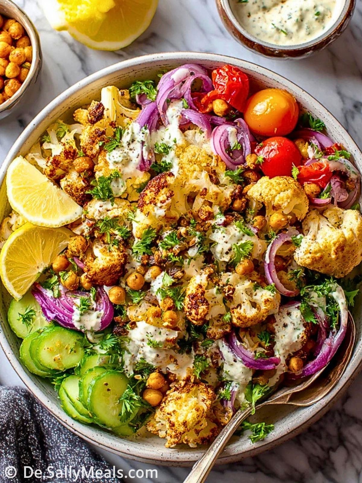 Besonders schön ist, dass sich das Rezept flexibel anpassen lässt. Ob als leichtes Mittagessen, schnelles Abendessen oder Meal-Prep für den nächsten Tag – die Kombination aus Blumenkohl, Kichererbsen, Getreide und frischen Toppings schmeckt ausgewogen, farbenfroh und angenehm sättigend.