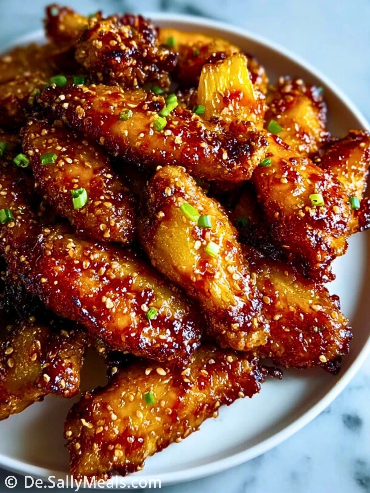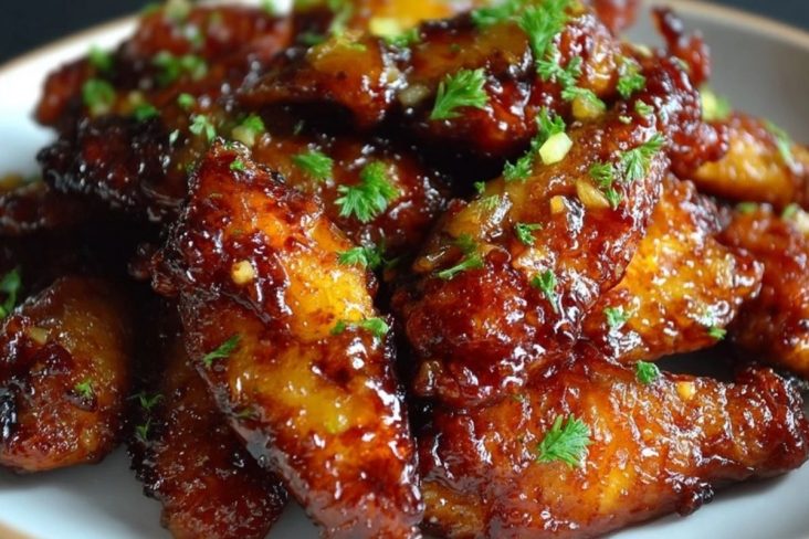 Saftige Hähnchenflügel treffen auf eine glänzende, karamellisierte Glasur aus braunem Zucker, Ananas und einem Hauch Chili – außen leicht knusprig, innen wunderbar zart. Diese Flügel sind eine kleine Geschmacksexplosion aus Süße, Säure und Würze.