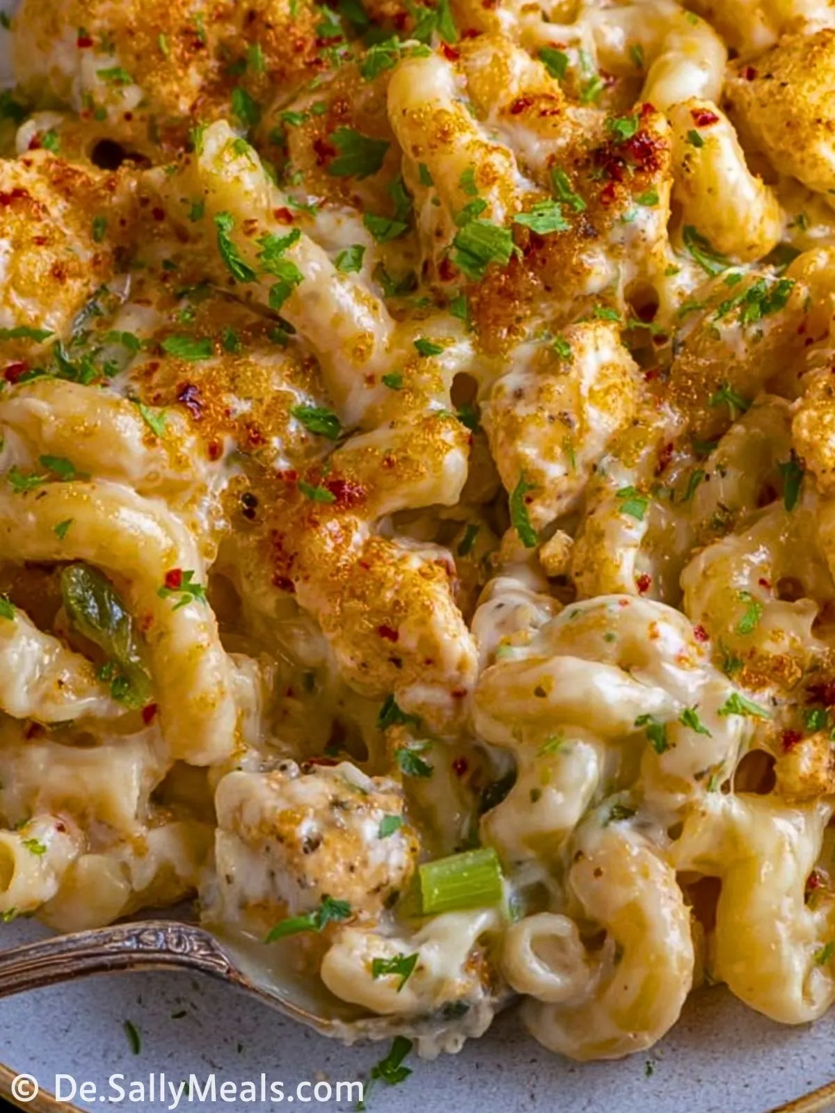 Die knusprig gebratenen Hähnchenstücke geben dem Gericht nicht nur eine Extraportion Eiweiß, sondern sorgen auch für Abwechslung im klassischen Mac and Cheese. Die Würze kann je nach Geschmack angepasst werden, sodass das Gericht sowohl für Gewürzliebhaber als auch für mildere Genießer geeignet ist.