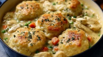 Herzhafte Hähnchen und Knödel mit Biscuits