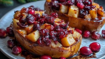 Cranberry Apfel Süßkartoffeln mit Doppelt Gebacken