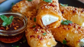 Ofenfrittierte Feta-Rollen mit Chili-Honig