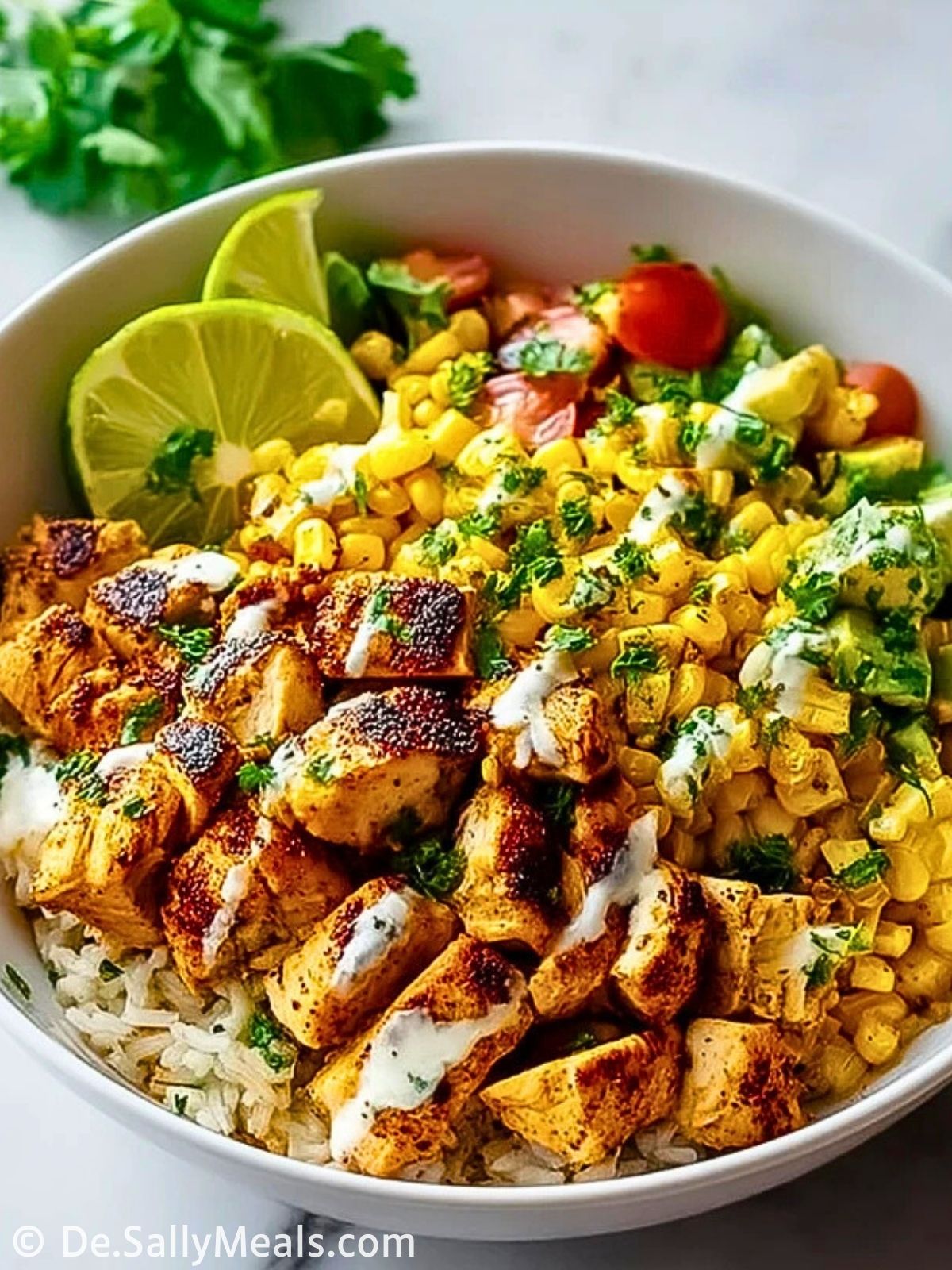 So bereitest du Chicken-Reis-Bowl mit Street Corn zu