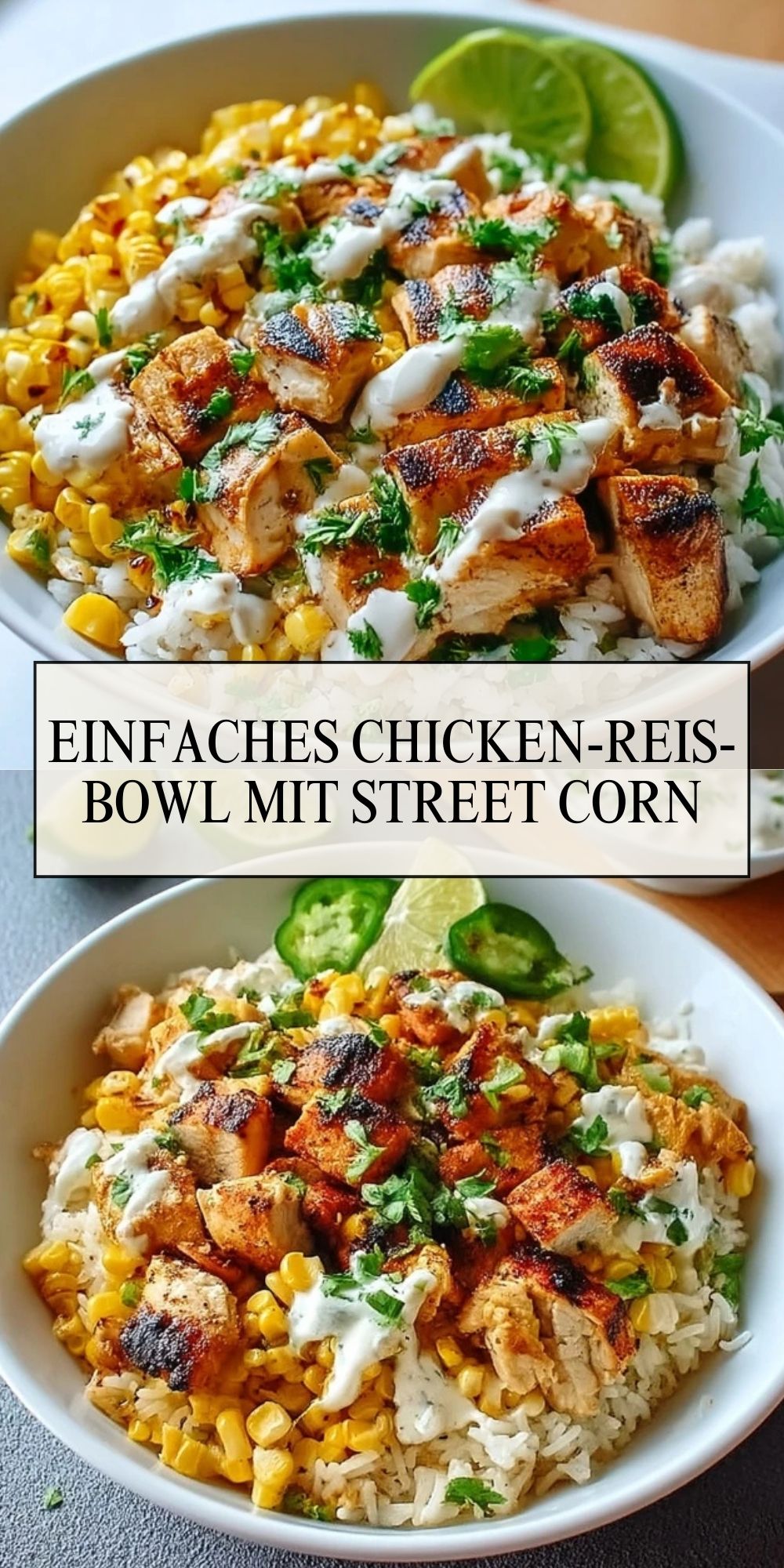 Saftiges Hähnchen, würziger Reis und gebratener Mais vereinen sich in dieser Chicken-Reis-Bowl mit Street Corn zu einem echten Wohlfühlgericht. Dieses Rezept bringt die beliebten Aromen der mexikanischen Straßenküche direkt in deine Küche – unkompliziert, sättigend und voller Geschmack. Die Kombination aus rauchigem Hähnchen, süßem Mais, frischer Limette und cremigem Topping sorgt für ein perfektes Zusammenspiel von Texturen und Aromen.