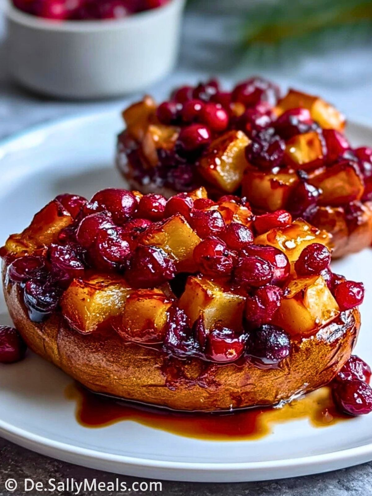 Cranberry Apfel Süßkartoffeln mit Doppelt Gebacken