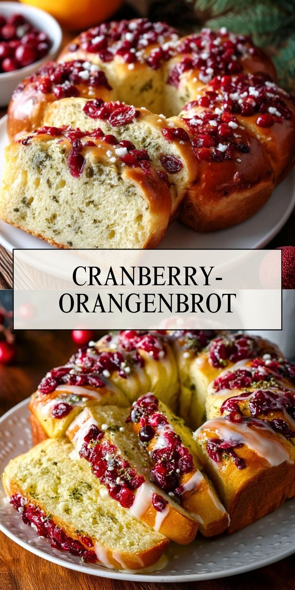 Dieses Brot vereint das Beste aus süßem Hefezopf und festlichem Früchtebrot: Der Teig ist weich und buttrig, aber nicht zu schwer. Die Cranberries sorgen für kleine fruchtige Highlights in jedem Bissen, während Orangenschale und Orangensaft eine frische, leicht herbe Zitrusnote beitragen. Der einfache Zuckerguss rundet alles ab und sorgt für den typischen „Feiertags-Look“ – ohne dass du stundenlang in der Küche stehen musst.