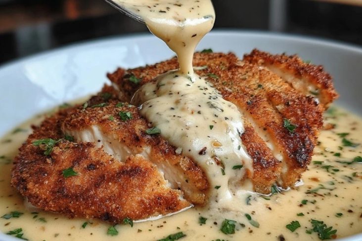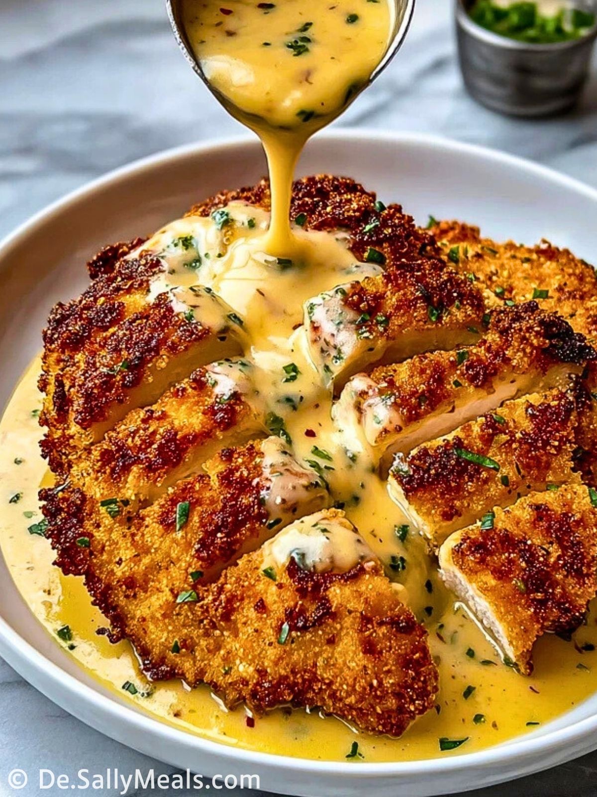 Das Geheimnis dieses Rezepts liegt in der Kombination aus knuspriger Panade und einer samtigen Knoblauch-Sahnesoße. Die Kruste hält das Fleisch saftig, während die Soße das Gericht mit einer harmonischen Würze und angenehmen Cremigkeit vollendet. Besonders gut: Die Zubereitung gelingt unkompliziert und ist auch für Kochanfänger geeignet.