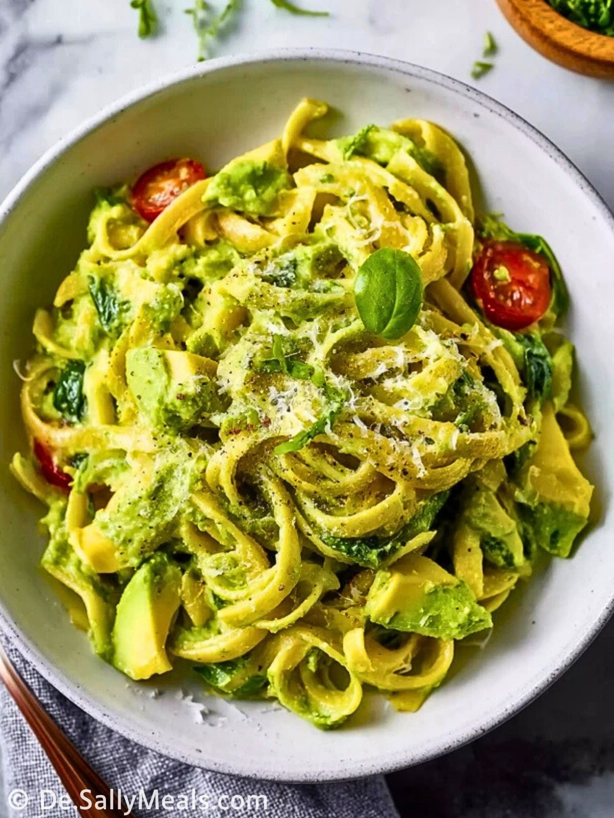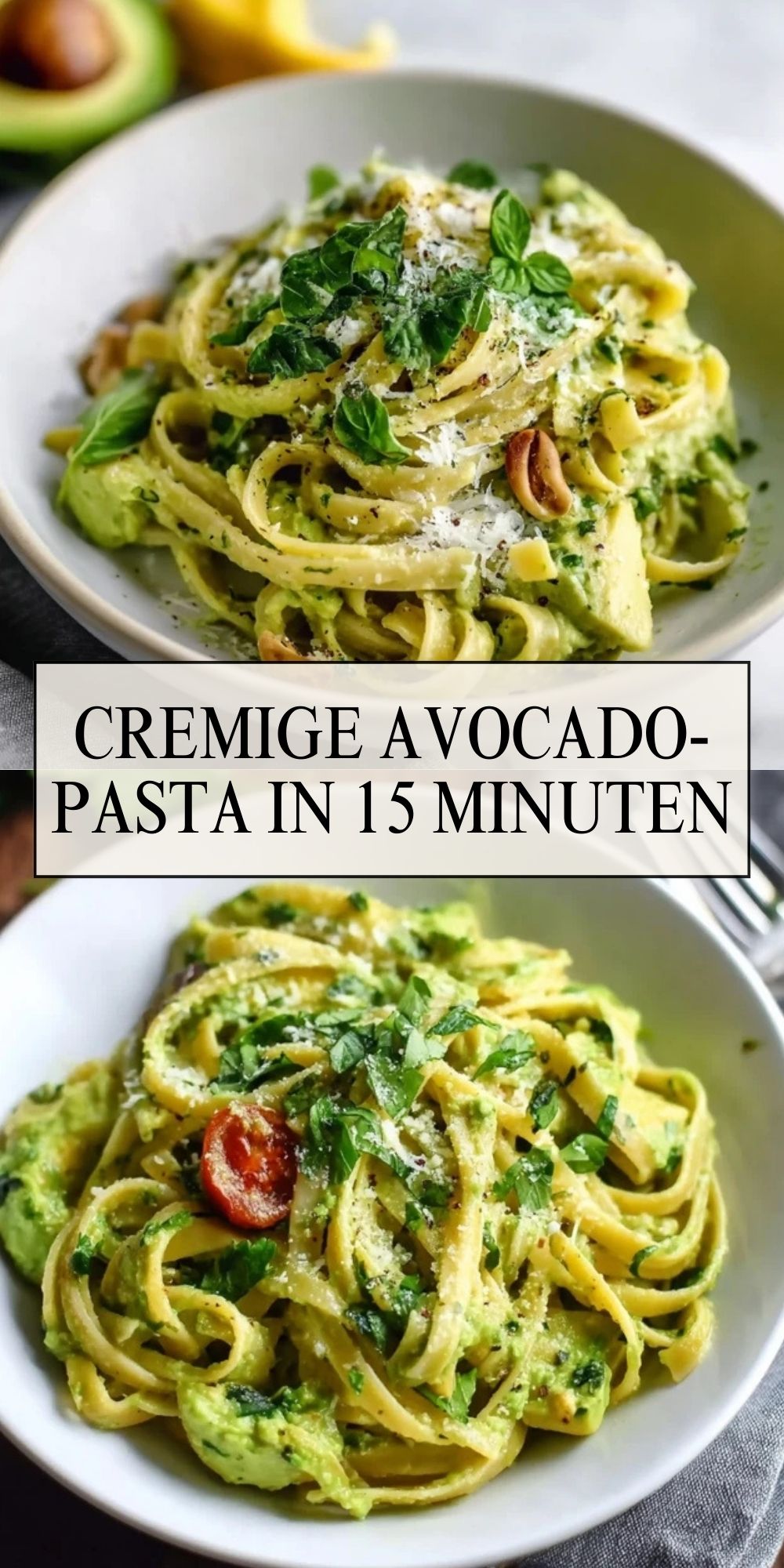Die Kombination aus reifer Avocado, frischen Kräutern und etwas Zitrone sorgt für eine herrlich grüne Sauce, die die Pasta sanft umhüllt. Ein paar Kirschtomaten, geriebener Parmesan und ein Hauch Knoblauch runden das Gericht ab – so einfach, so lecker und sogar gesund!