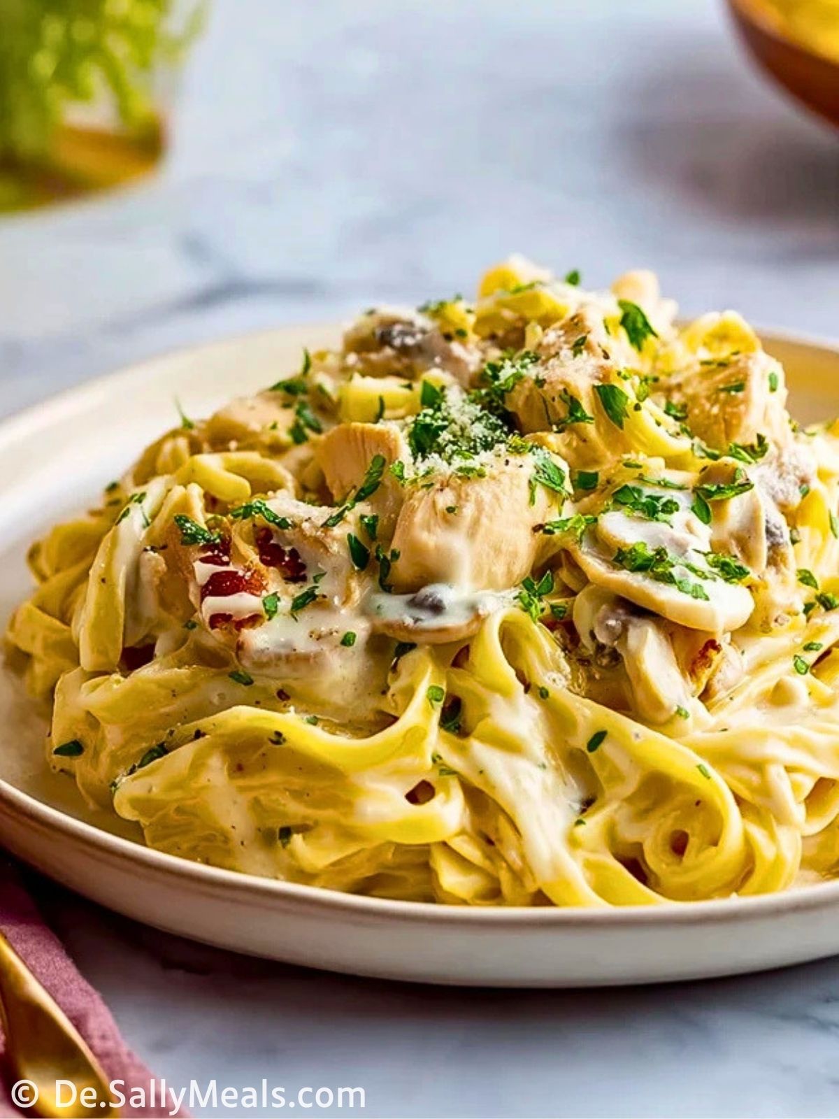 Dieses Rezept ist deshalb so beliebt, weil es eine wunderbare Balance aus einfacher Zubereitung und vollem Geschmack bietet. Die breiten Fettuccine nehmen die Sauce besonders gut auf, das Hähnchen bringt Substanz ins Gericht und der frisch geriebene Parmesan sorgt für die typische würzige Tiefe. Dazu kommt: Das Rezept lässt sich leicht anpassen, gelingsicher kochen und passt sowohl zum schnellen Abendessen als auch zu einem gemütlichen Essen am Wochenende.