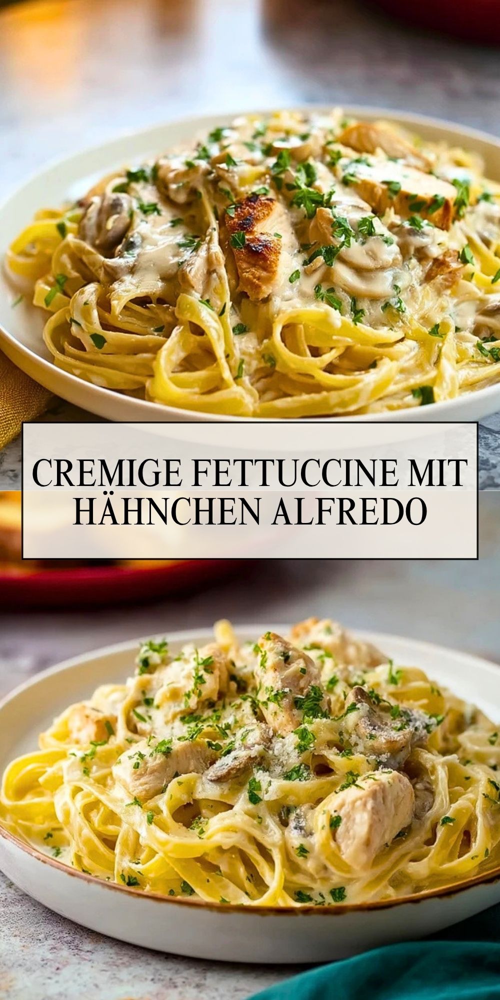 Gerade wenn du ein Rezept suchst, das alltagstauglich ist und gleichzeitig Gäste begeistert, liegst du mit dieser Variante goldrichtig. Die Kombination aus mildem Hähnchen, fein gebratenen Champignons und der cremigen Alfredo-Sauce sorgt für viel Geschmack ohne unnötigen Aufwand. So entsteht ein Gericht, das vertraut wirkt und dennoch immer wieder begeistert.