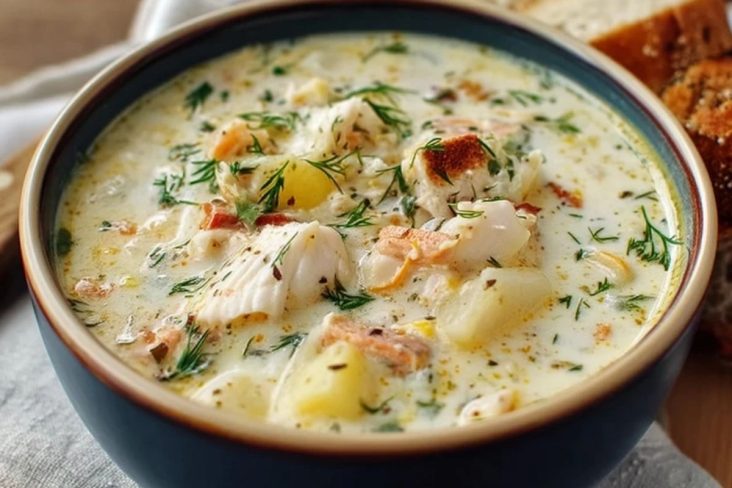 Eine dampfend heiße Schüssel cremige Fischsuppe ist genau das Richtige, wenn du dir ein gemütliches Essen wünschst, das gleichzeitig leicht und sättigend ist. Zarte Fischstücke, feine Kartoffelwürfel und ein Hauch Sahne verbinden sich zu einer Suppe, die nach Küste, frischen Kräutern und Wohlgefühl schmeckt.