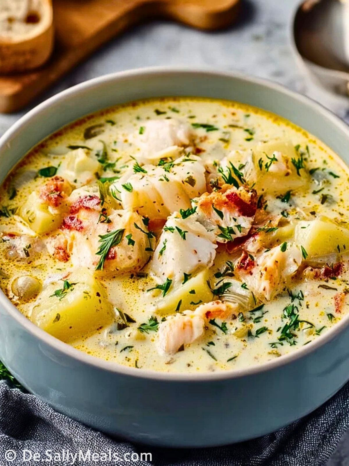 Die Suppe selbst kommt ohne Mehl aus und ist daher in der Grundversion bereits glutenfrei, sofern du eine glutenfreie Brühe verwendest. Achte beim Servieren einfach darauf, glutenfreies Brot anzubieten oder es ganz wegzulassen. So eignet sich die cremige Fischsuppe auch für Gäste mit Glutenunverträglichkeit.