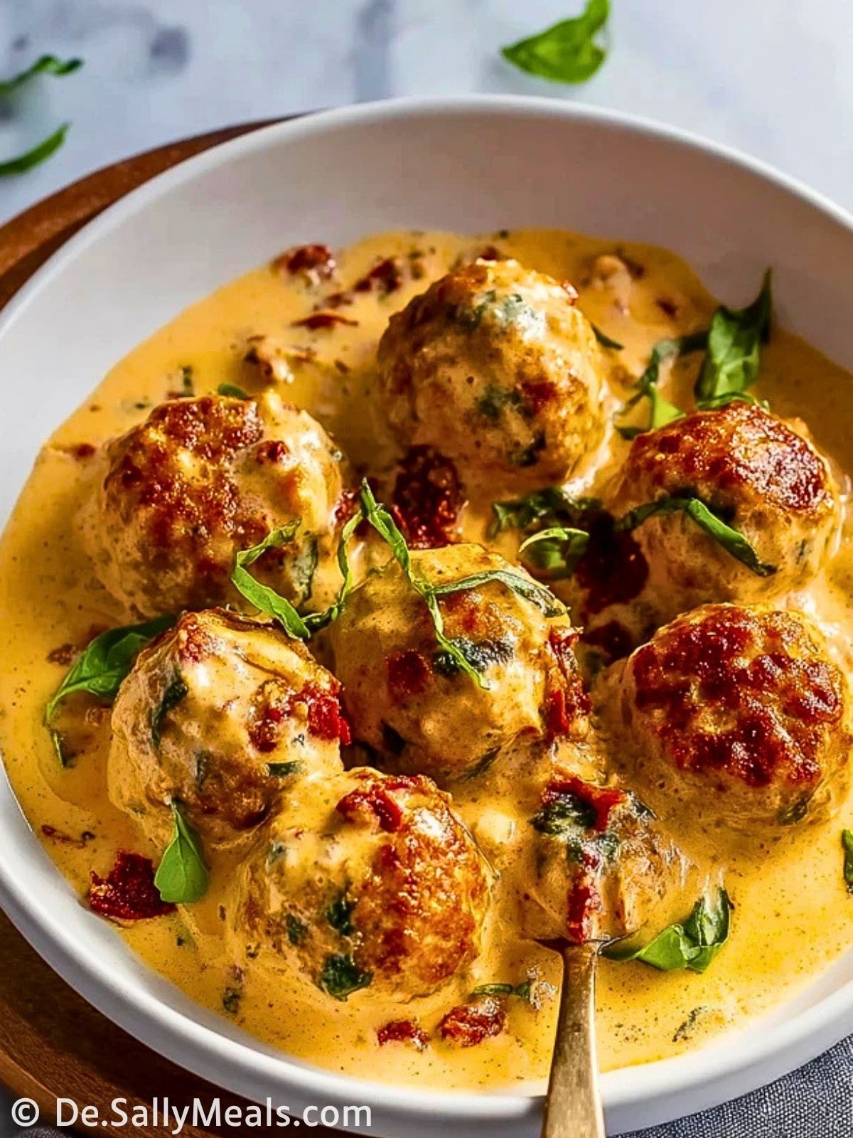 Eine herrlich cremige, festlich wirkende Mahlzeit mit saftigen Fleischbällchen in einer würzigen Parmesan-Sahne-Sauce mit getrockneten Tomaten und Kräutern. Dieses Rezept passt sowohl für Gäste als auch für ein gemütliches Familienessen und lässt sich gut vorbereiten.