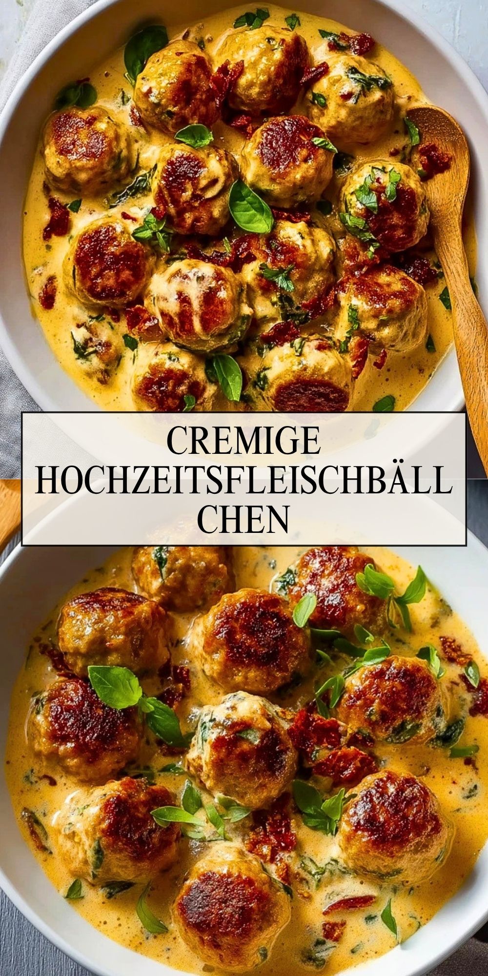 Cremige Hochzeitsfleischbällchen sind ein herrlich wohliges Gericht, das zarte Fleischbällchen mit einer samtigen, aromatischen Sauce verbindet. Die Mischung aus goldbraun angebratenem Hackfleisch, Kräutern und einer cremigen Sauce macht dieses Rezept zu einem echten Lieblingsessen für besondere Anlässe und gemütliche Familienabende.