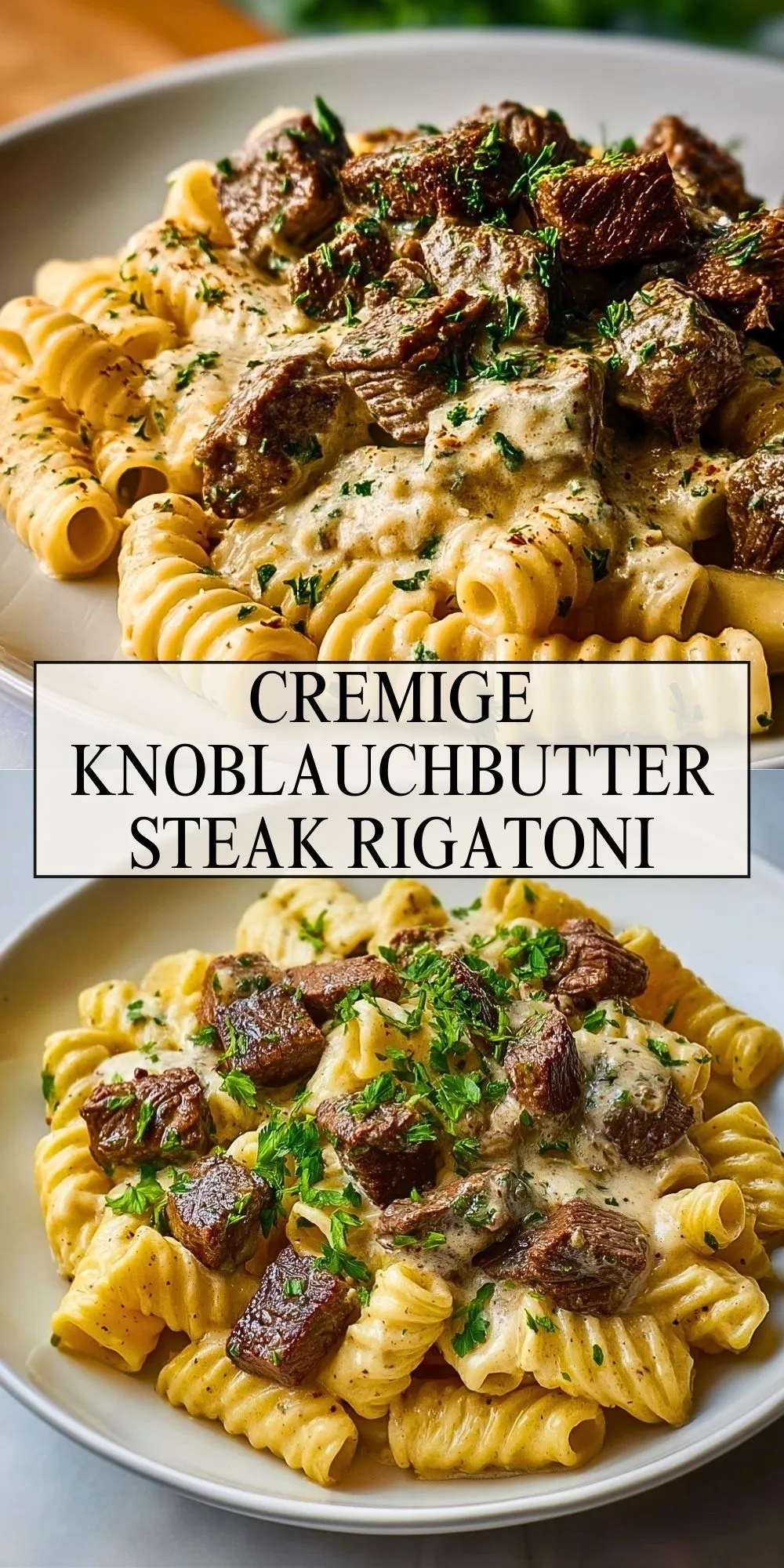 Zartes Rindersteak, gebratene Champignons und eine cremige Knoblauchbutter-Sauce treffen auf perfekt al dente gekochte Rigatoni – dieses Pastagericht schmeckt wie beim Italiener und lässt sich ganz einfach zu Hause zubereiten! Ideal für ein festliches Abendessen oder als Genussmoment unter der Woche.