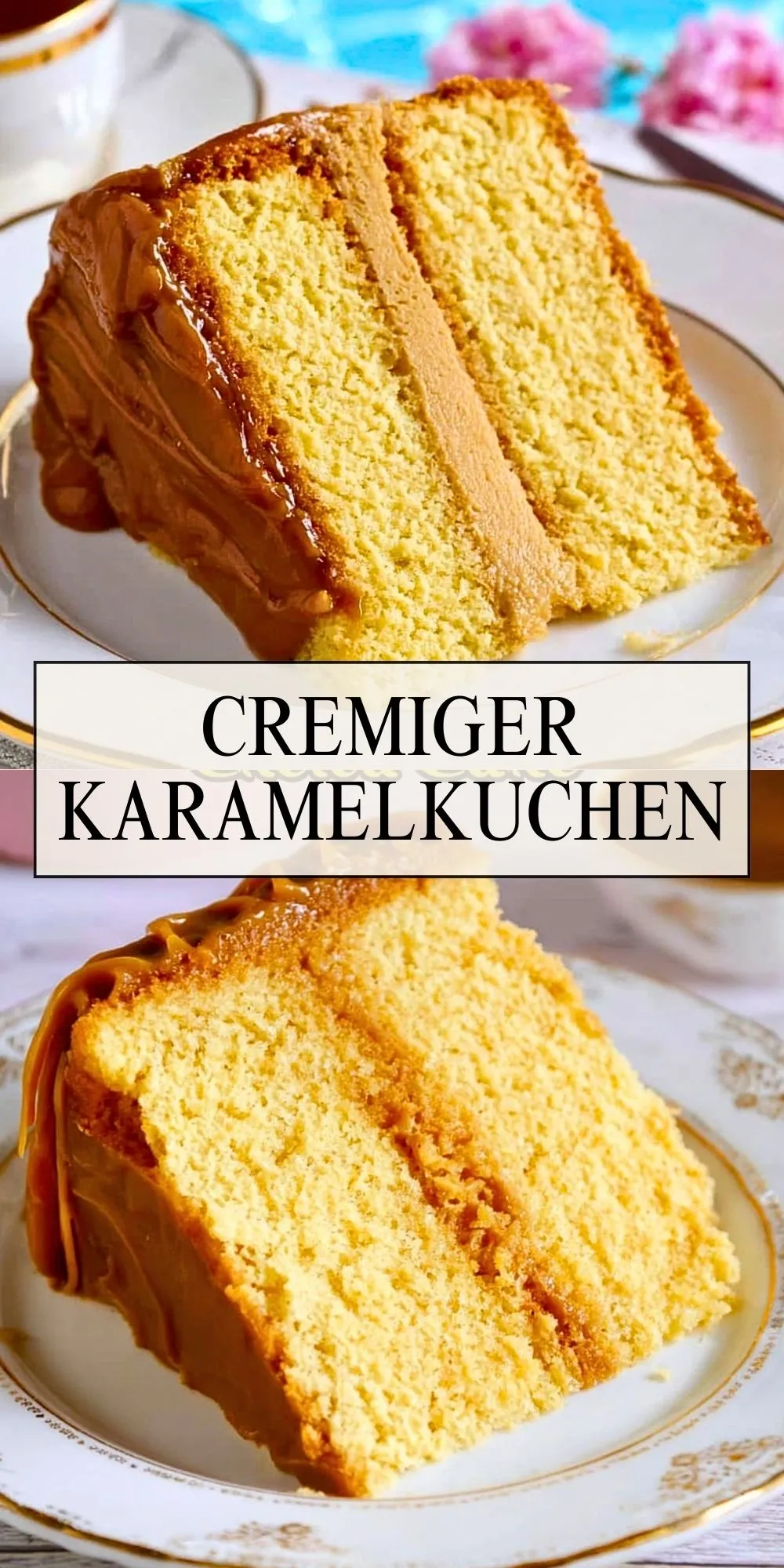 Ein luftiger, zarter Vanillekuchen mit samtig-cremiger Karamellfüllung und glänzendem Karamell-Topping. Perfekt für besondere Anlässe oder als süßer Genuss zum Kaffee – garantiert ein Highlight auf jeder Kuchentafel!
