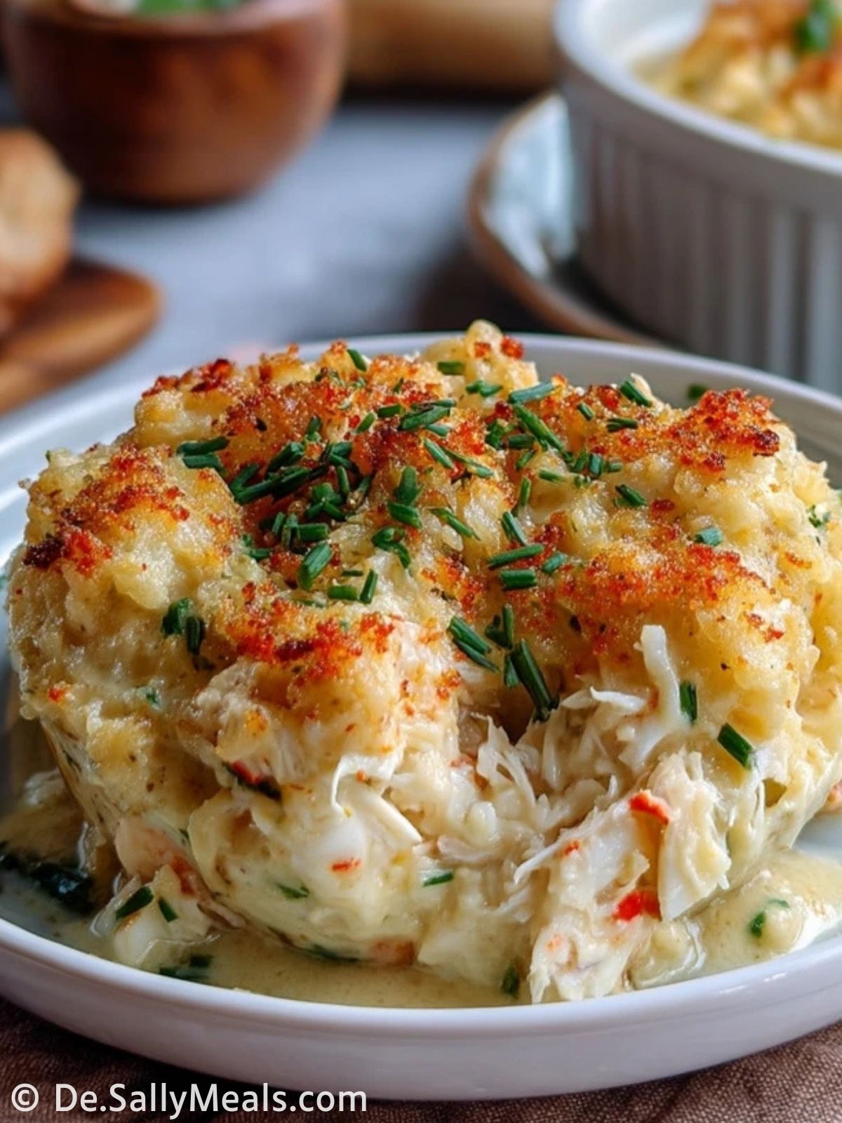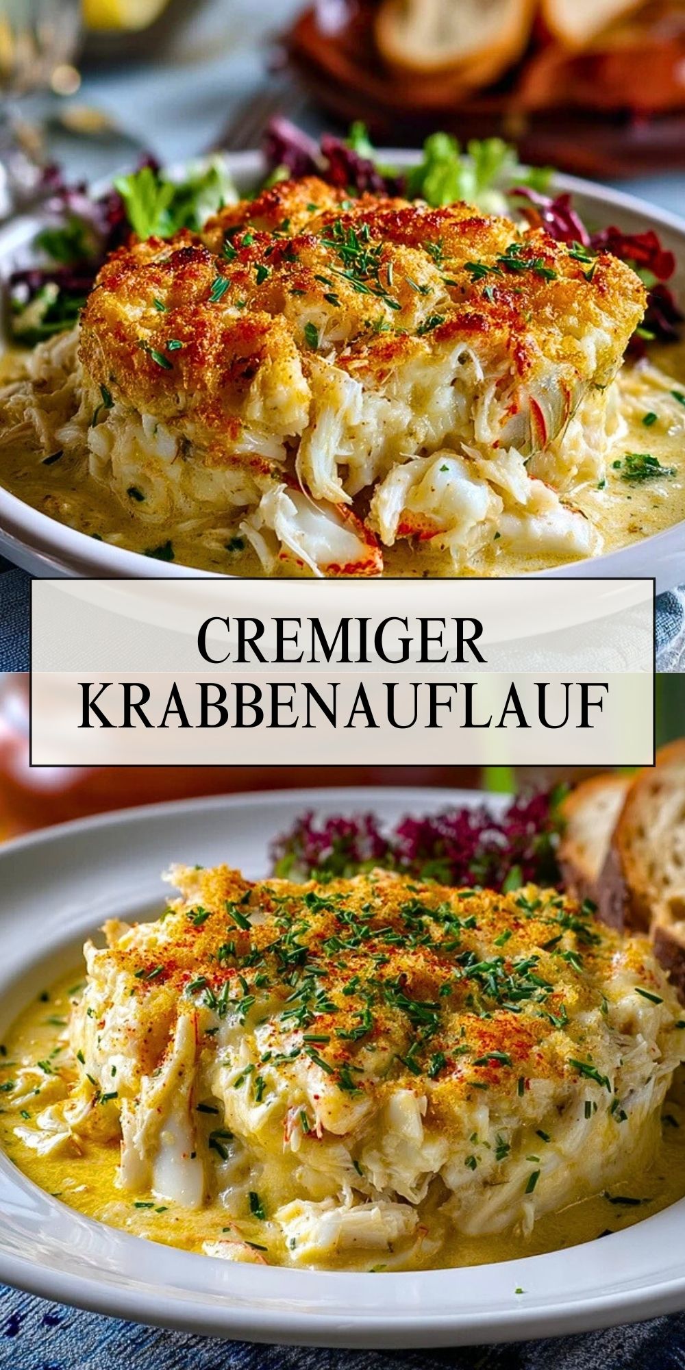 Dieser cremige Krabbenauflauf verbindet zartes Krabbenfleisch mit einer sahnigen Käse-Sauce und knuspriger Kruste – ein komfortables Ofengericht, das sich perfekt für ein entspanntes Wochenendessen oder einen besonderen Anlass mit Meeresfrüchte-Fans eignet.