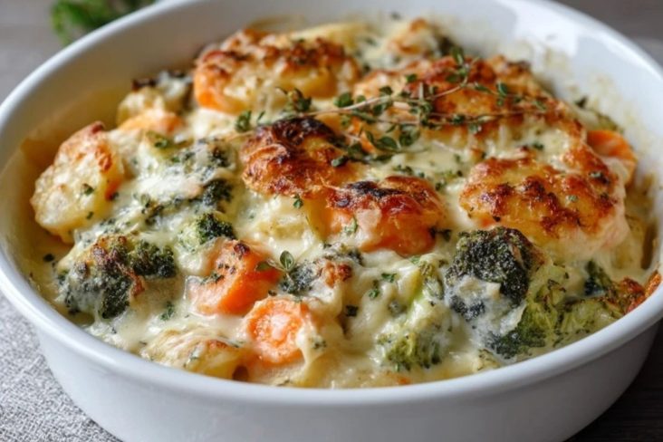 Besonders schön an diesem Rezept ist, dass es alltagstauglich und zugleich richtig gemütlich wirkt. Brokkoli, Karotten und Blumenkohl bringen Farbe, Biss und feines Aroma in die Form, während die cremige Basis alles zusammenhält. So entsteht ein Auflauf, der als Hauptgericht genauso überzeugt wie als sättigende Beilage.