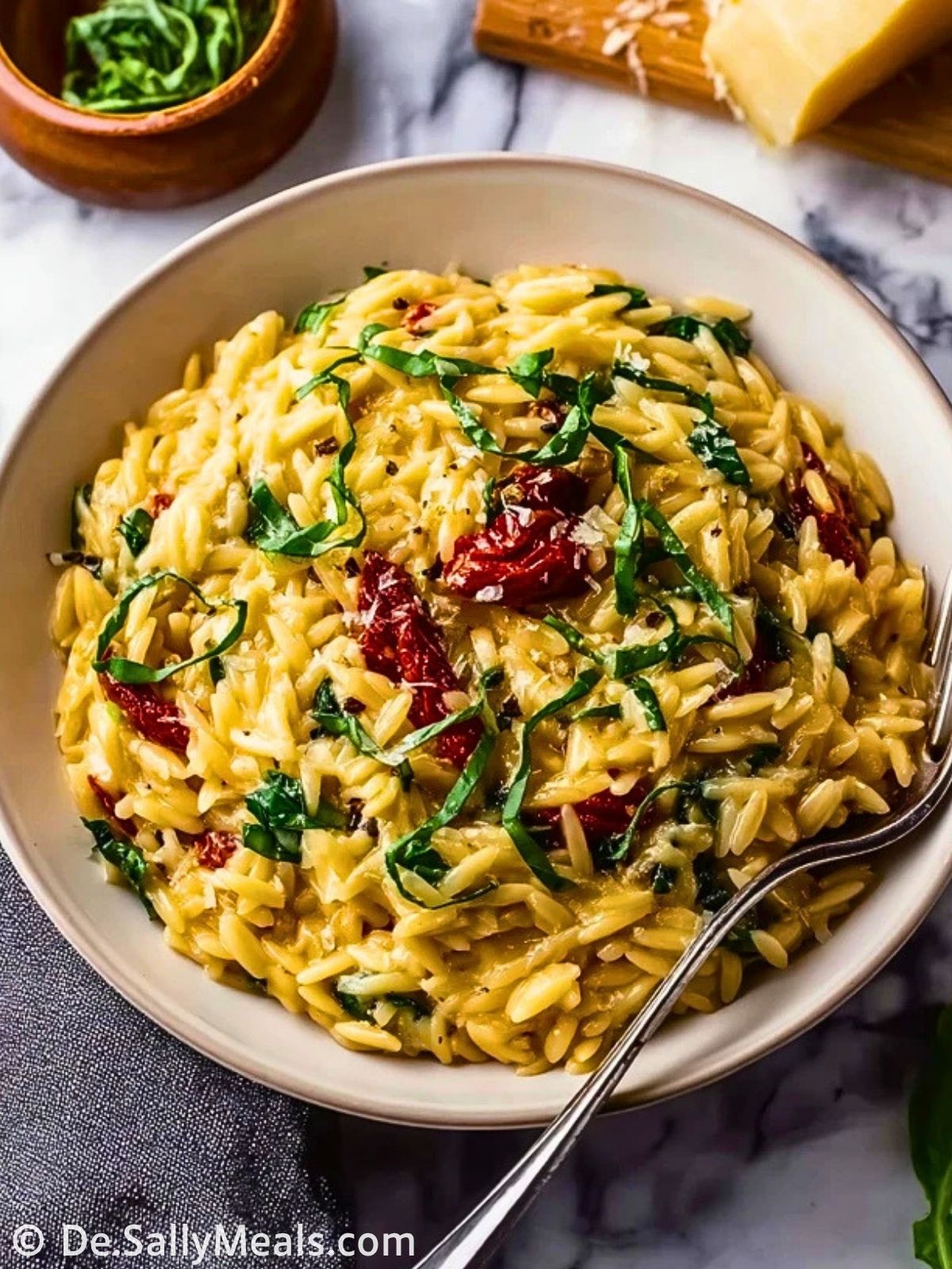 Orzo bildet die Grundlage des Rezepts und sorgt für die charakteristische, zartschmelzende Textur.