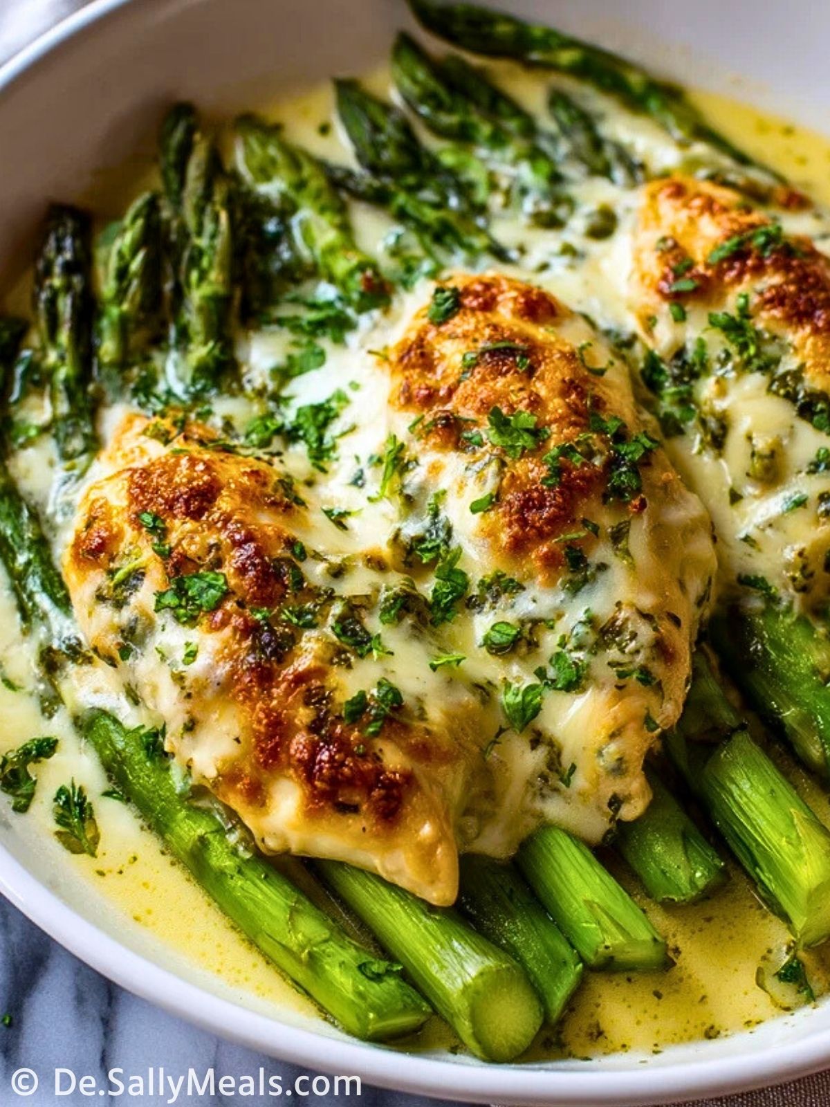 So bereitest du Cremiges Überbackenes Hähnchen mit Spargel zu