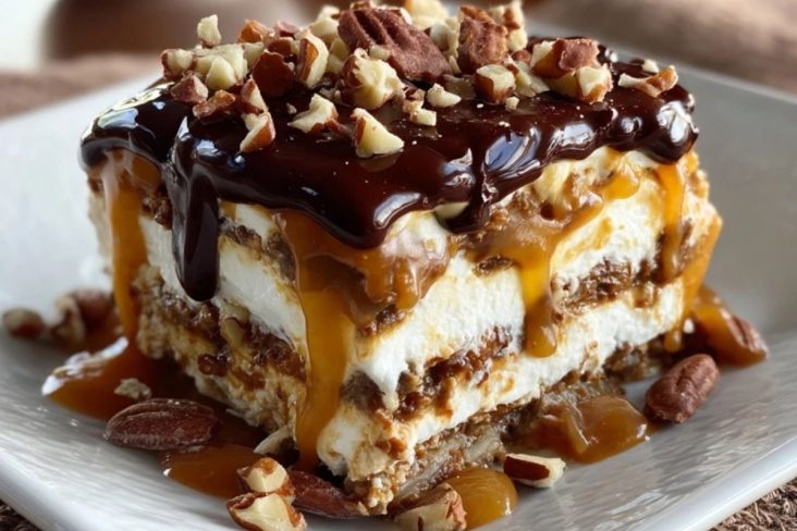 Das Beste daran: Du brauchst keinen Backofen. Das Dessert wird einfach geschichtet, gut gekühlt und anschließend in saubere Stücke geschnitten. Dadurch ist es ideal für Feiern, Familienfeste oder Tage, an denen du ein eindrucksvolles Dessert servieren möchtest, ohne lange in der Küche zu stehen.