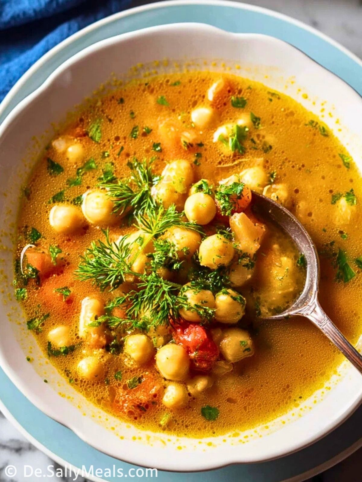 Die griechische Kichererbsensuppe ist klassisch vegan, da sie ohne tierische Produkte auskommt.