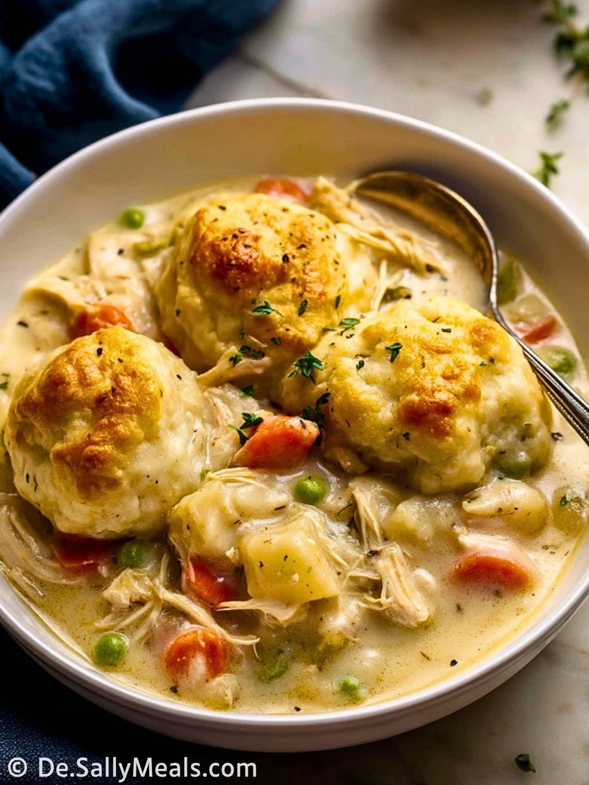 Dieses cremige Hähnchengericht mit zartem Gemüse und goldbraunen Knödeln aus Brötchenteig ist echtes Wohlfühlessen für die ganze Familie. Die herzhafte Sauce, das saftige Hähnchen und die fluffigen Knödel ergeben zusammen ein einfaches Ofengericht, das sättigt, wärmt und wunderbar hausgemacht schmeckt.
