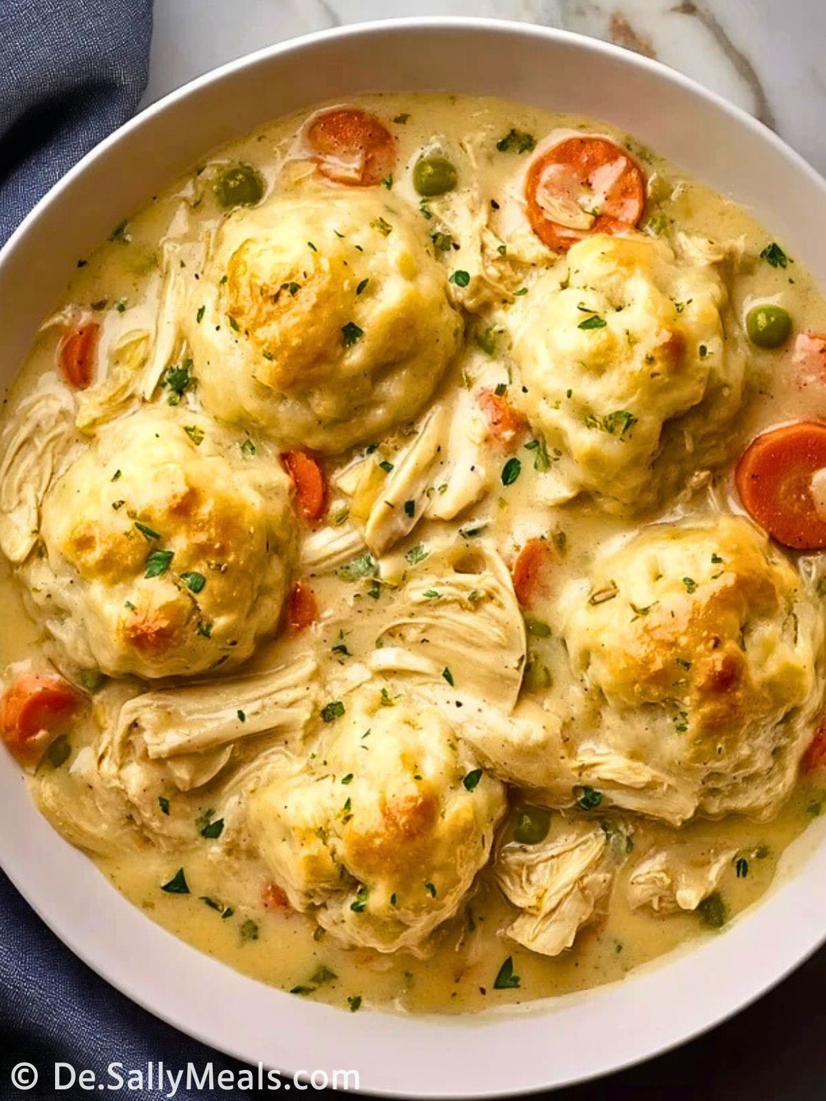 Das Geheimnis der fluffigen Knödel liegt in einer lockeren Mischung aus Mehl, Backpulver, Butter und Milch. Die Butter sollte kalt sein, damit die Knödel schön aufgehen und weich bleiben. Kurz ruhen lassen, bevor sie auf die heiße Sauce gesetzt werden, sorgt für die perfekte Konsistenz.