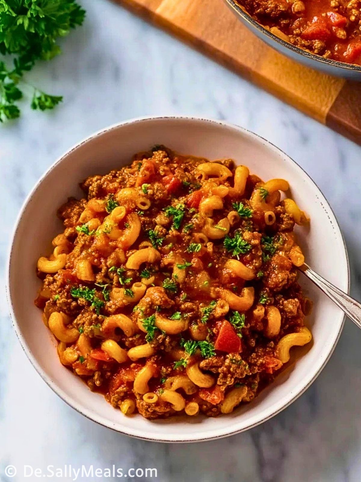 Die große Stärke dieses Gerichts liegt in seiner Mischung aus einfacher Zubereitung, vertrauten Zutaten und vollem Geschmack. Das Hackfleisch sorgt für herzhafte Tiefe, die Tomaten bringen Fruchtigkeit, und die Nudeln machen das Ganze angenehm sättigend. So entsteht ein unkompliziertes Hauptgericht, das sowohl Kindern als auch Erwachsenen meist sofort schmeckt.
