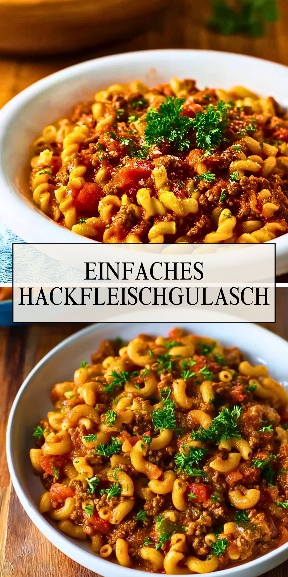 Einfaches Hackfleischgulasch ist ein herzhaftes, unkompliziertes Familiengericht mit Makkaroni, würzigem Hackfleisch und einer sämigen Tomatensauce. Es ist schnell zubereitet, sättigend und ideal für den Alltag, wenn du ein warmes, deftiges Essen ohne großen Aufwand auf den Tisch bringen möchtest.