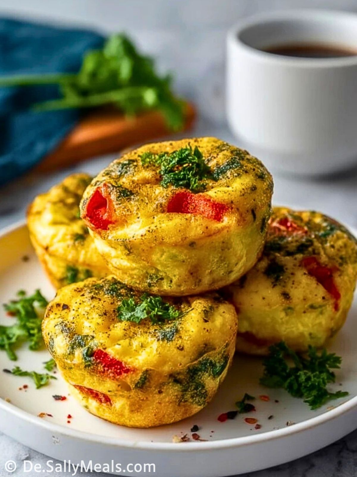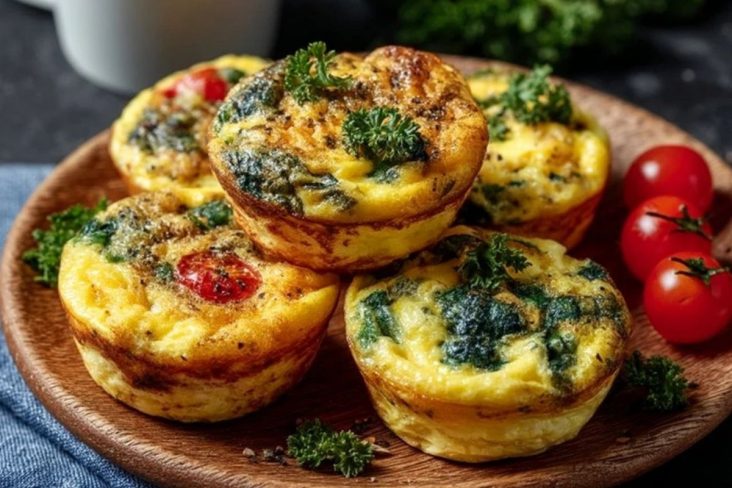 Diese herzhaften Eiwit-Bissen sind kleine Ofen-Omelettes aus Ei, Spinat, Tomaten und Käse – perfekt fürs proteinreiche Frühstück, Meal Prep oder den schnellen Snack unterwegs.