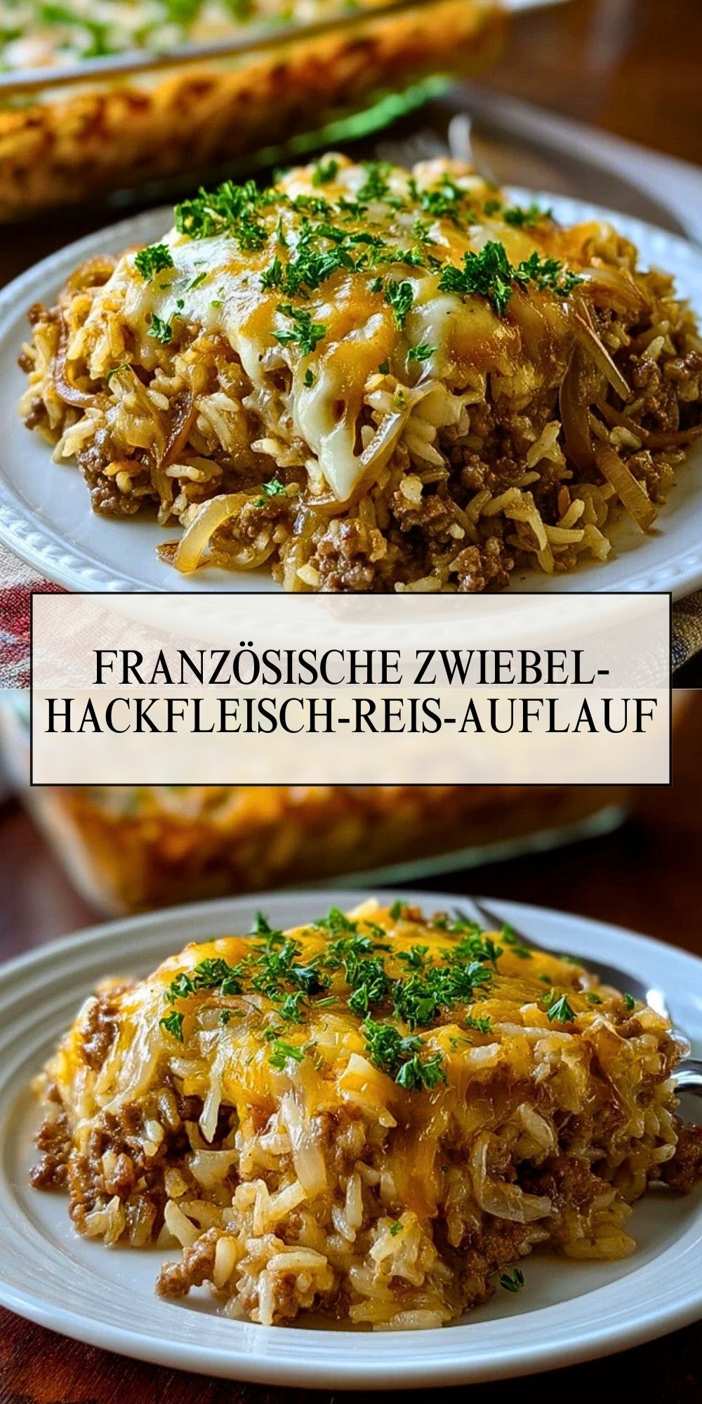 Herzhafter französischer Zwiebel-Hackfleisch-Reis-Auflauf – ein aromatischer Wohlfühlklassiker mit karamellisierten Zwiebeln, würzigem Hackfleisch, lockerem Reis und goldener Käsekruste. Perfekt für die ganze Familie, unkompliziert und besonders sättigend.