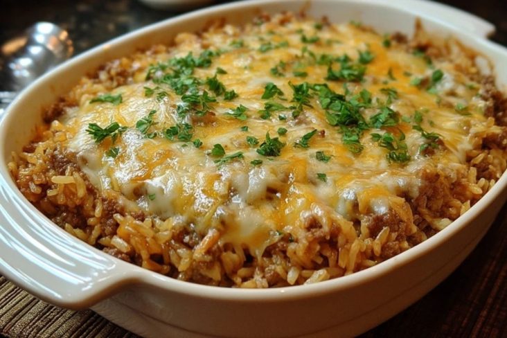 Ein herzhafter französischer Zwiebel-Hackfleisch-Reis-Auflauf ist die perfekte Kombination aus würzigem Hackfleisch, zartem Reis, geschmolzenem Käse und der feinen Süße von gebratenen Zwiebeln. Dieses Gericht eignet sich wunderbar als Familienessen und begeistert mit seinem unwiderstehlichen Aroma selbst anspruchsvolle Genießer. Die goldbraune Käsekruste und der Duft frisch gehackter Petersilie machen diesen Auflauf zu einem echten Wohlfühlgericht, das direkt aus dem Ofen auf den Tisch kommt.