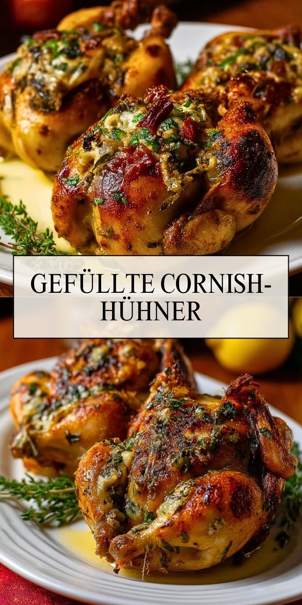Gefüllte Cornish-Hühner – Ein Festtagsklassiker mit Kräuterfüllung