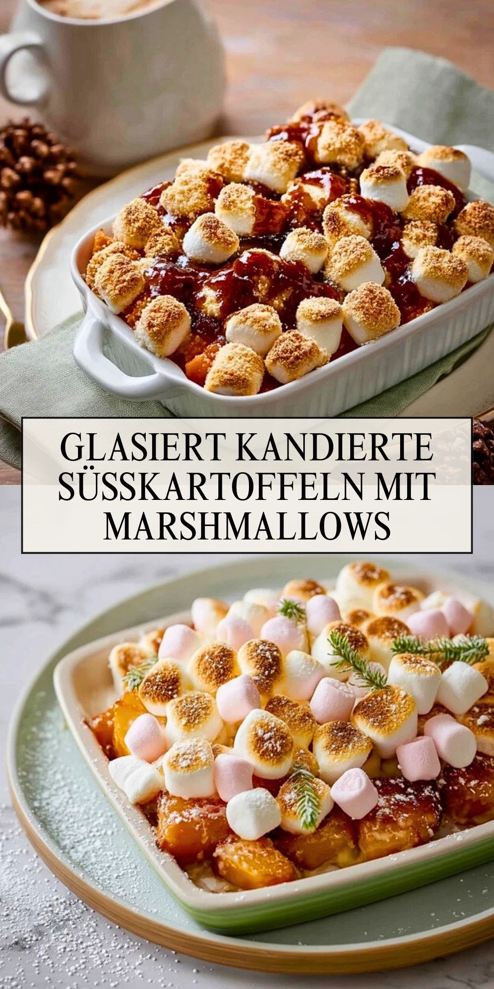 Glasiert kandierte Süßkartoffeln mit Marshmallows sind eine festliche Beilage, die mit süßen, cremigen Süßkartoffeln, einer buttrig-zimtigen Glasur und goldbraunen Marshmallows überzeugt. Perfekt als Highlight für Feiertage oder besondere Anlässe!