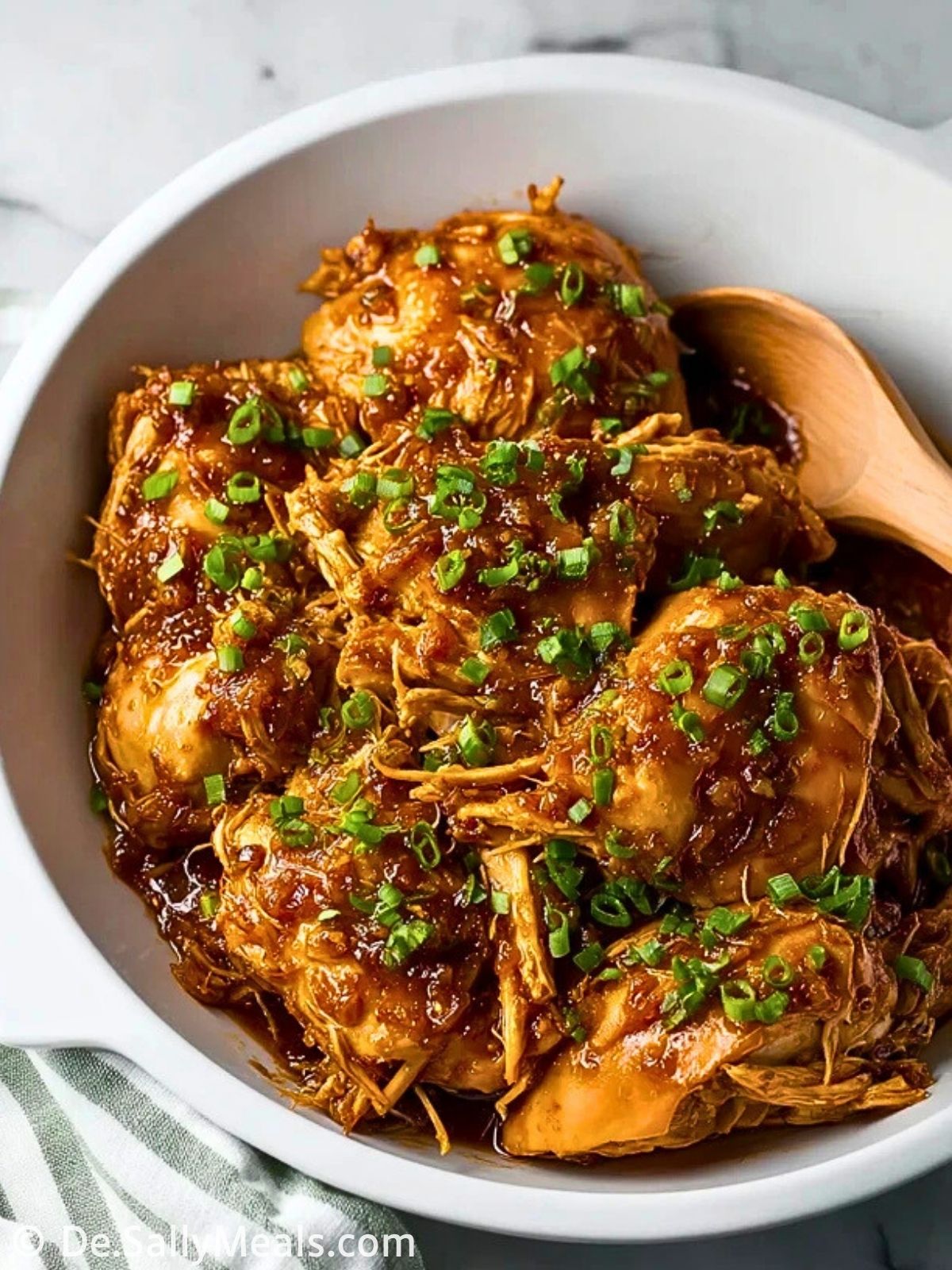 Hähnchenteile vorsichtig herausnehmen und warm halten. Die Sauce in einen kleinen Topf geben oder direkt im Slow Cooker lassen. Maisstärke mit wenig Wasser anrühren, zur Sauce geben und 5–10 Minuten auf hoher Stufe köcheln, bis sie dicklich wird.