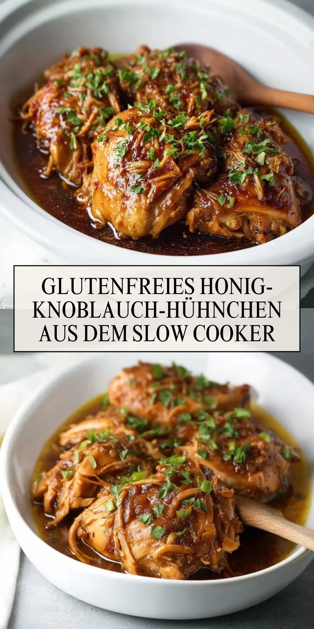 Saftige Hähnchenschenkel oder Keulen werden im Slow Cooker langsam in einer würzigen Sauce aus Honig, Knoblauch und glutenfreier Sojasauce gegart. Das Ergebnis ist zartes Fleisch mit einer süß-würzigen Glasur – ein ideales Wohlfühlessen, das sich ganz unkompliziert vorbereiten lässt und allen schmeckt, auch ohne Gluten.