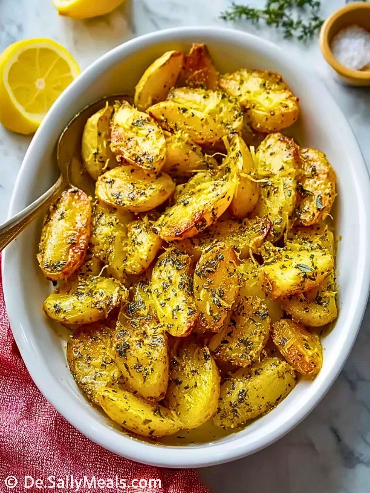 Typisch für dieses Rezept ist, dass die Kartoffeln nicht einfach nur im Ofen garen, sondern dabei Brühe, Zitronensaft, Knoblauch und Kräuter aufnehmen. So entsteht eine intensive, fast schon schmelzende Textur mit mediterranem Charakter. Ob zu Hähnchen, Fisch, Lamm oder einfach mit einem Joghurt-Dip serviert: Diese Kartoffeln passen zu vielen Gelegenheiten und schmecken auch dann großartig, wenn sie der heimliche Star des Essens sind.