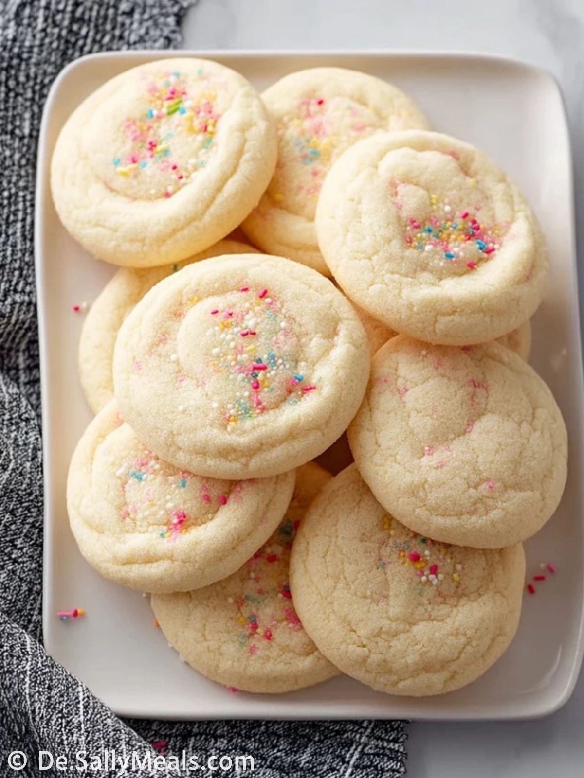 Forme aus dem Teig kleine Kugeln (etwa walnussgroß) und wälze sie nach Belieben in zusätzlichem Zucker oder bestreue sie mit bunten Streuseln. Lege die Kugeln mit ausreichend Abstand auf das Blech.