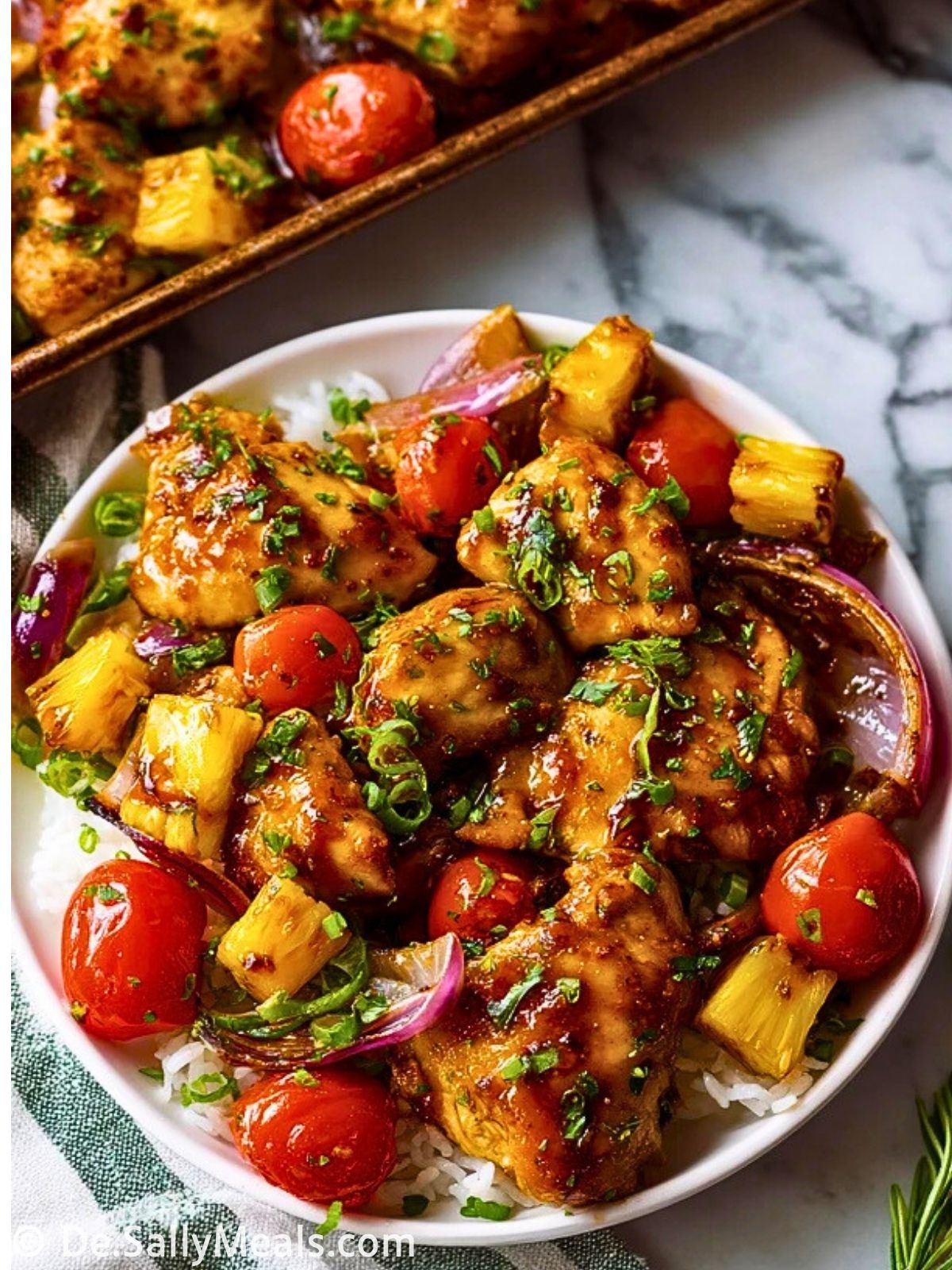 Ein saftiges Ofengericht mit zartem Hähnchen, süßer Ananas und buntem Gemüse, das fruchtige und herzhafte Aromen wunderbar verbindet. Dieses Rezept ist einfach vorbereitet, alltagstauglich und schmeckt besonders gut mit Reis als vollständige Mahlzeit.