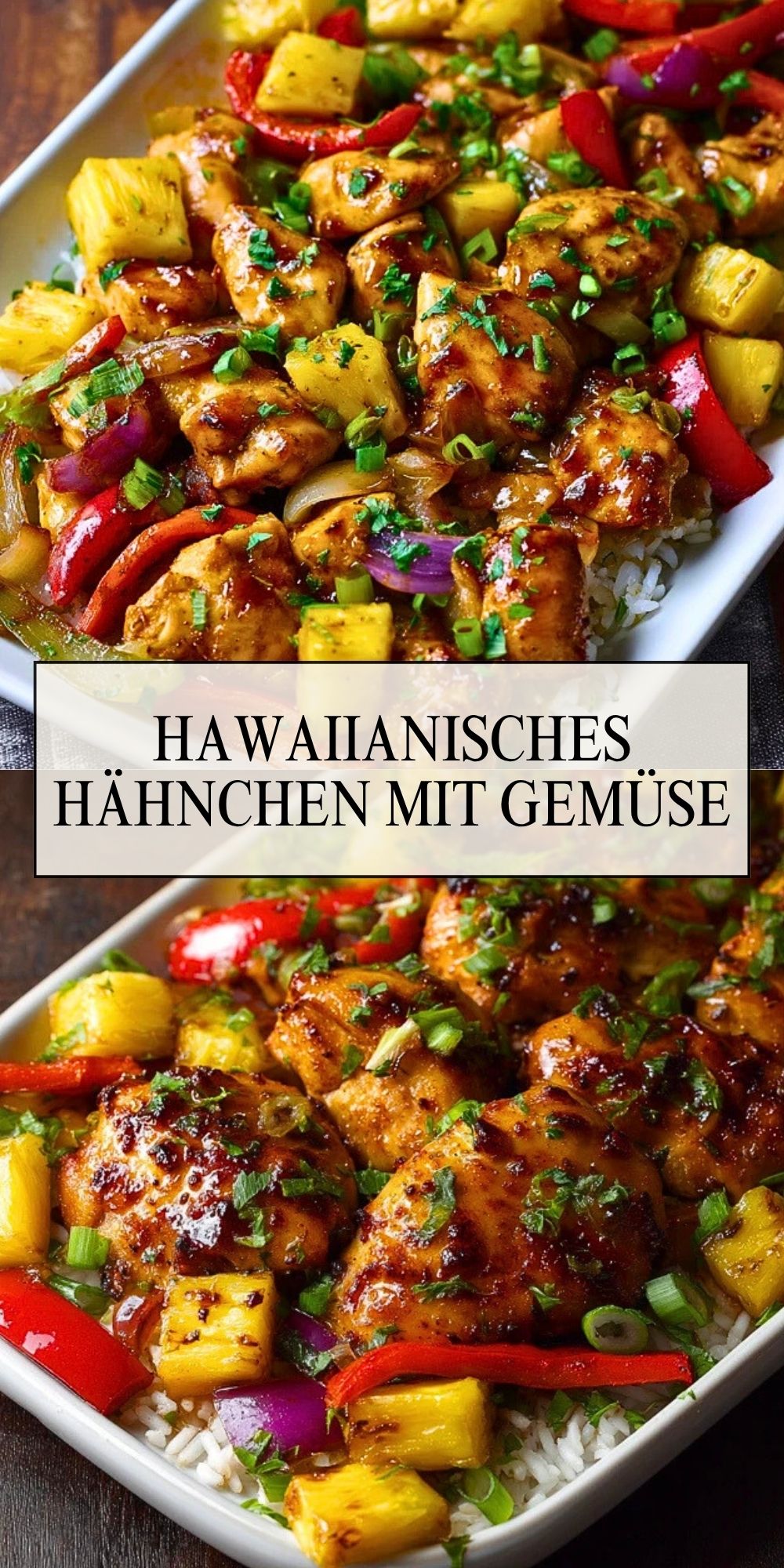 Ananas harmoniert wunderbar mit Hähnchen, weil ihre natürliche Süße einen spannenden Kontrast zu würzigen und herzhaften Aromen bildet. Beim Backen wird sie noch saftiger und verbindet sich mit den Röstaromen von Gemüse und Fleisch zu einer ausgewogenen, leicht karamellisierten Sauce, die dem ganzen Gericht seinen typischen hawaiianischen Charakter verleiht.