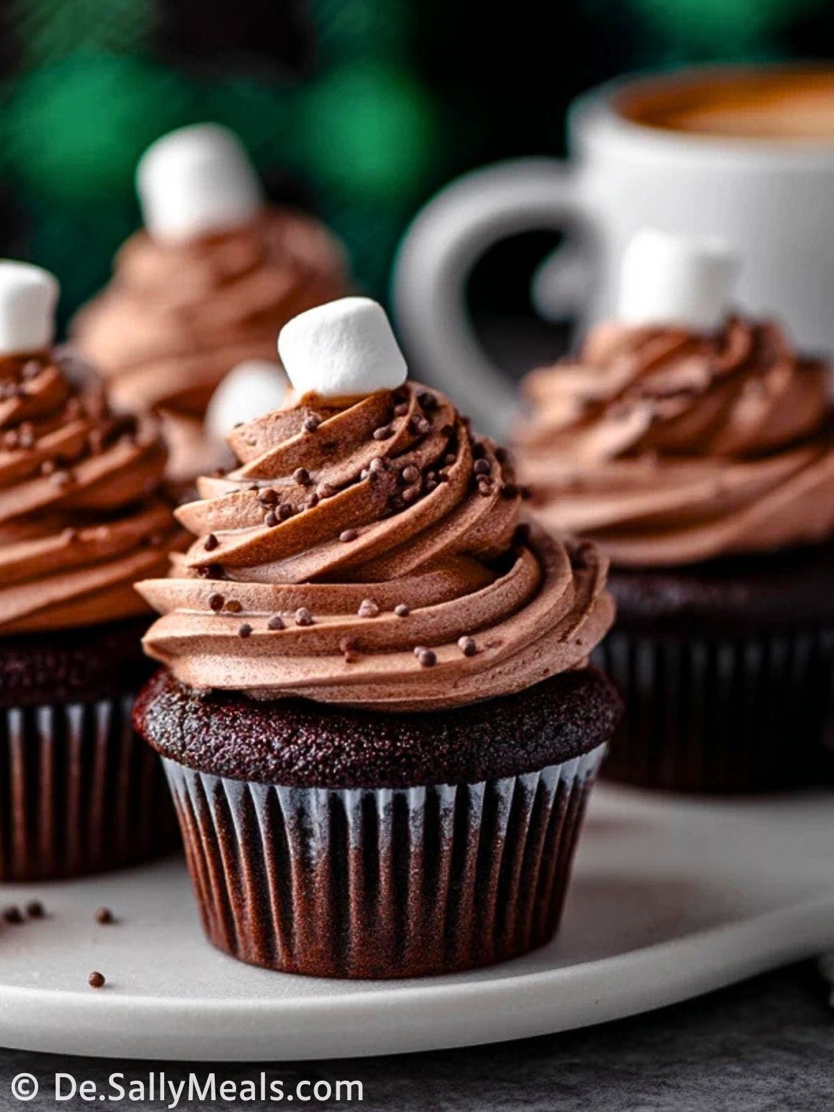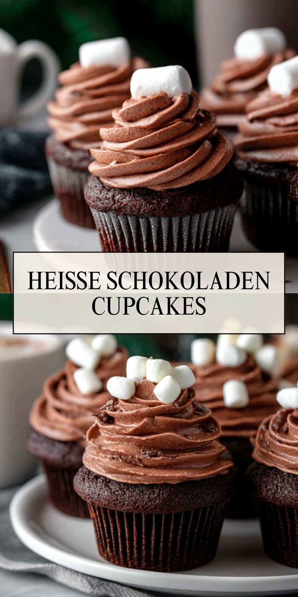 Diese Heiße Schokoladen Cupcakes sind ein Genuss für Schokoladenfans: Saftiger Schokoladen-Teig, cremiges Schoko-Topping, zart schmelzende Ganache und fluffige Marshmallows. Perfekt für kalte Tage, Partys oder als süßes Highlight im Winter!