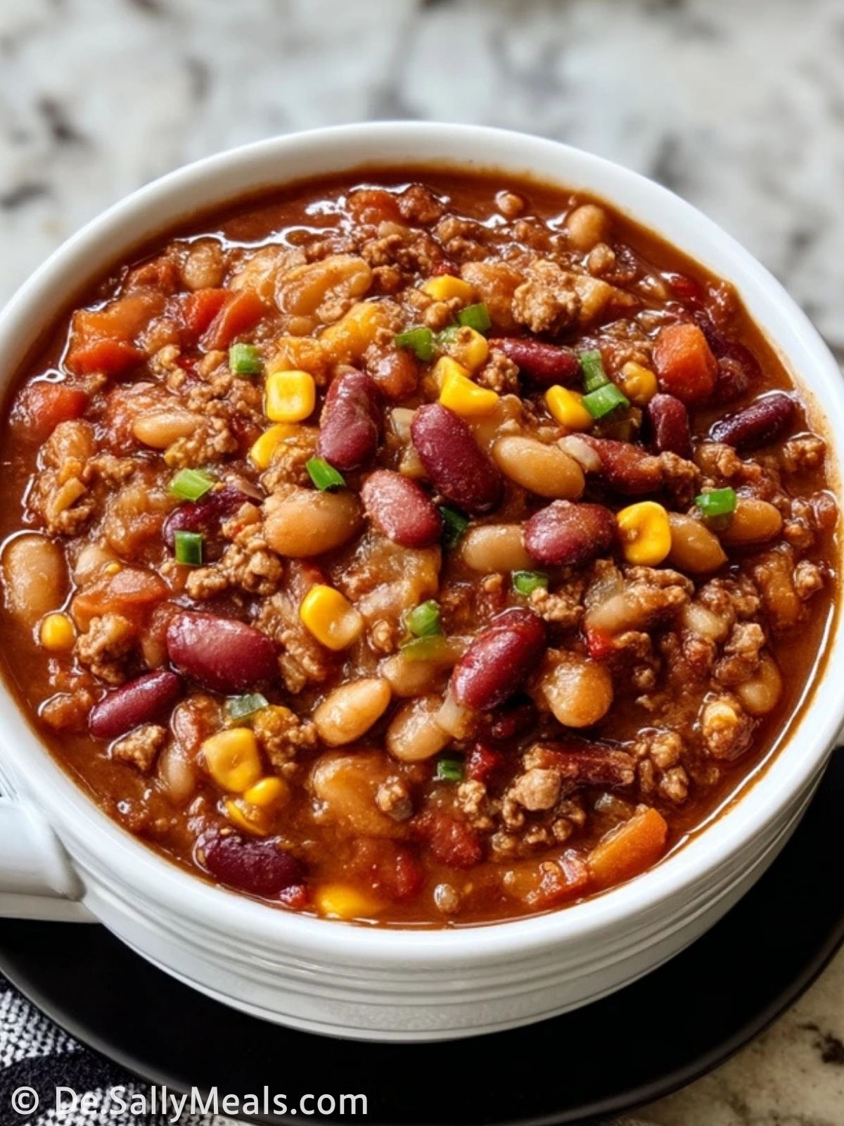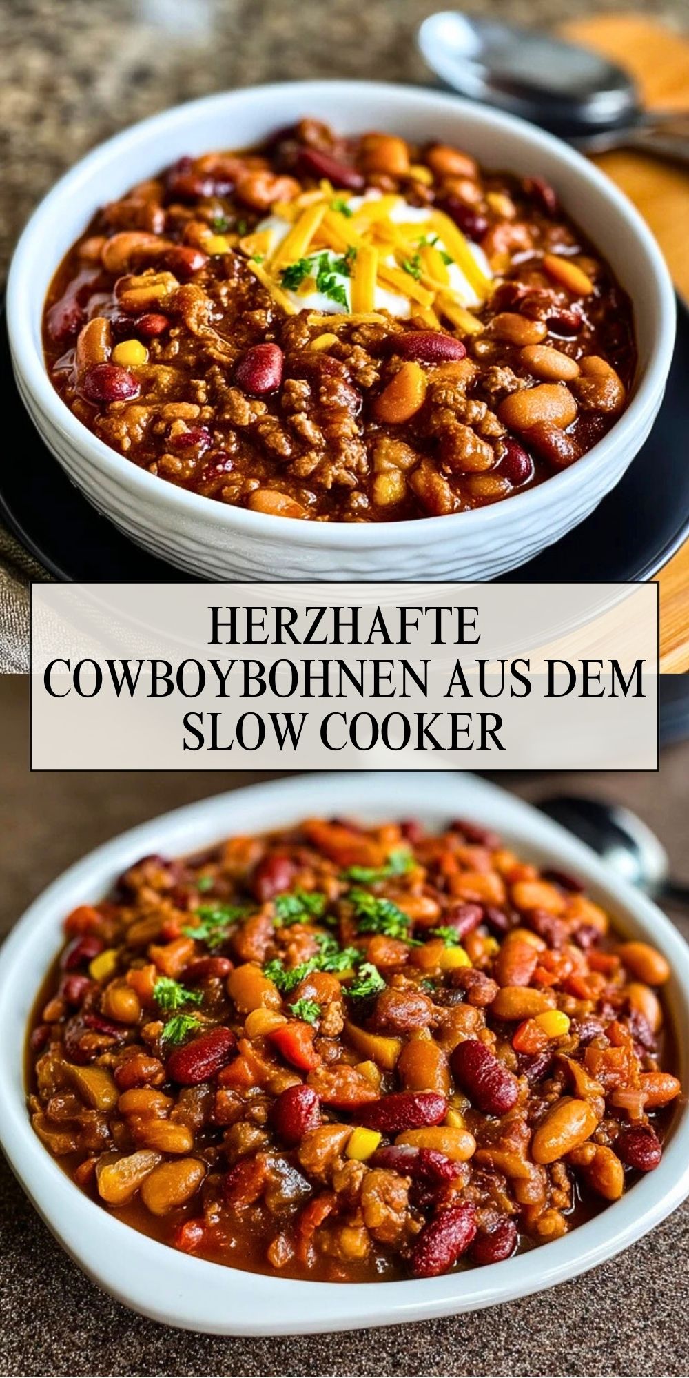 Herzhafte Cowboybohnen aus dem Slow Cooker bringen rustikalen Western-Genuss auf deinen Teller: zartes Hackfleisch, bunte Bohnen, Gemüse und eine rauchige BBQ-Tomatensauce verbinden sich zu einem sättigenden Eintopf für die ganze Familie. Perfekt zum Vorbereiten, für Partys oder als wärmendes Alltagsgericht!