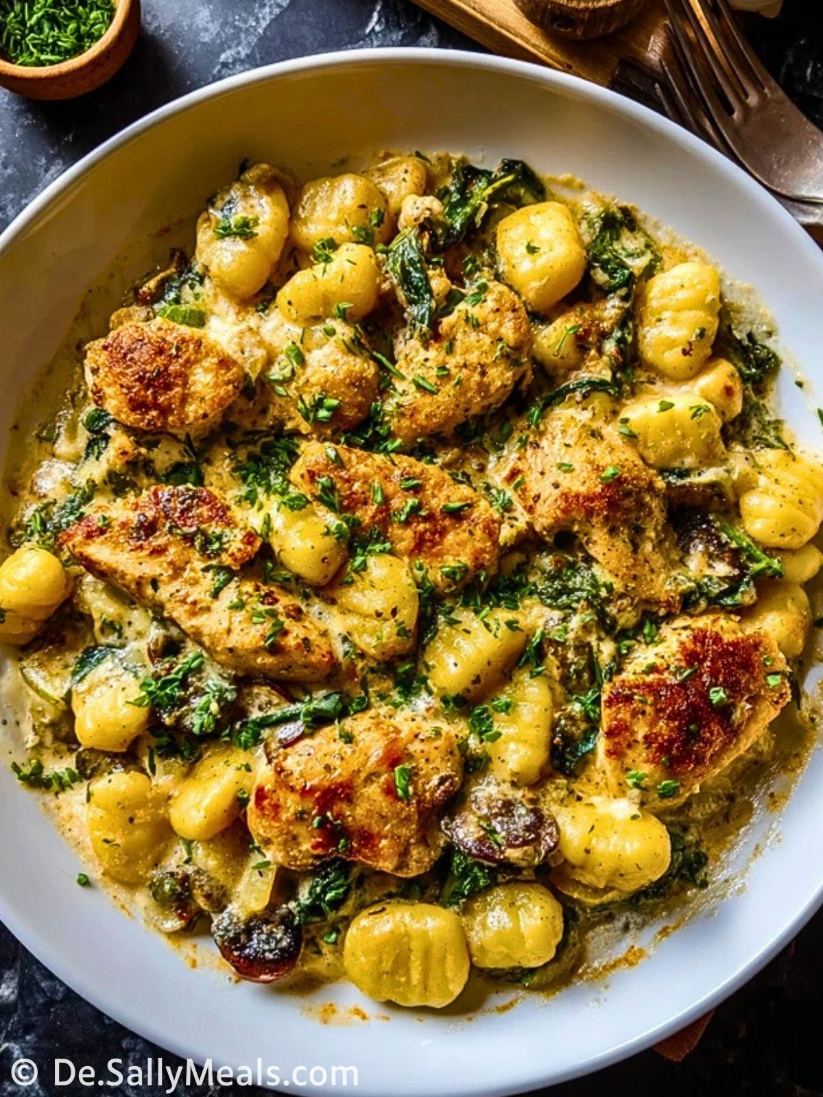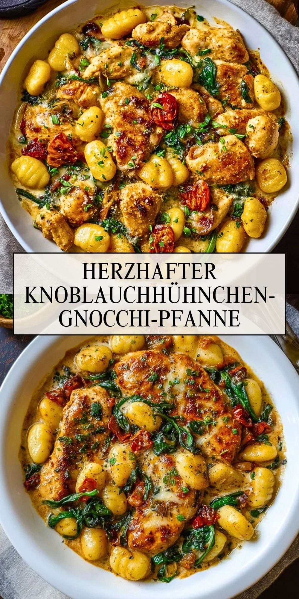 Dieses herzhafte Pfannengericht vereint zartes Hähnchen, fluffige Gnocchi, cremige Knoblauch-Sahnesauce, frischen Spinat und Kirschtomaten zu einem italienisch inspirierten Wohlfühlessen. Schnell gemacht, einfach und ein Genuss für die ganze Familie!
