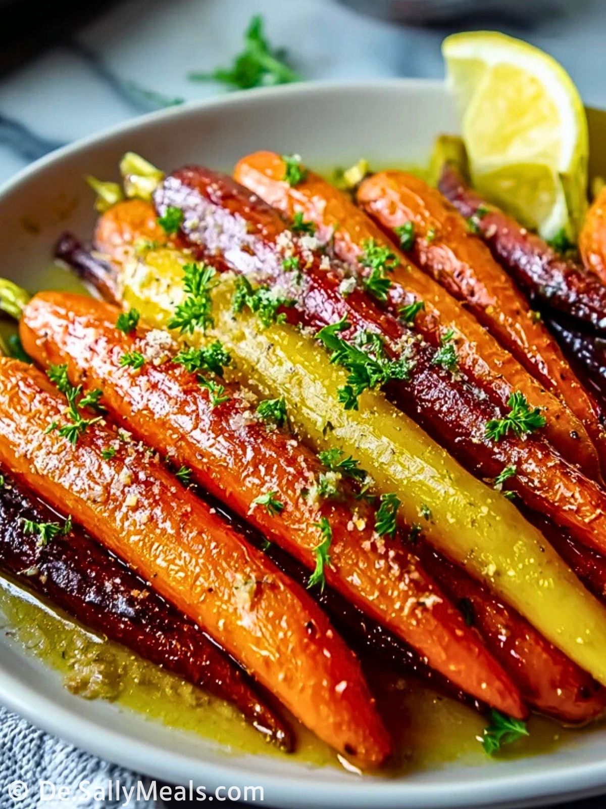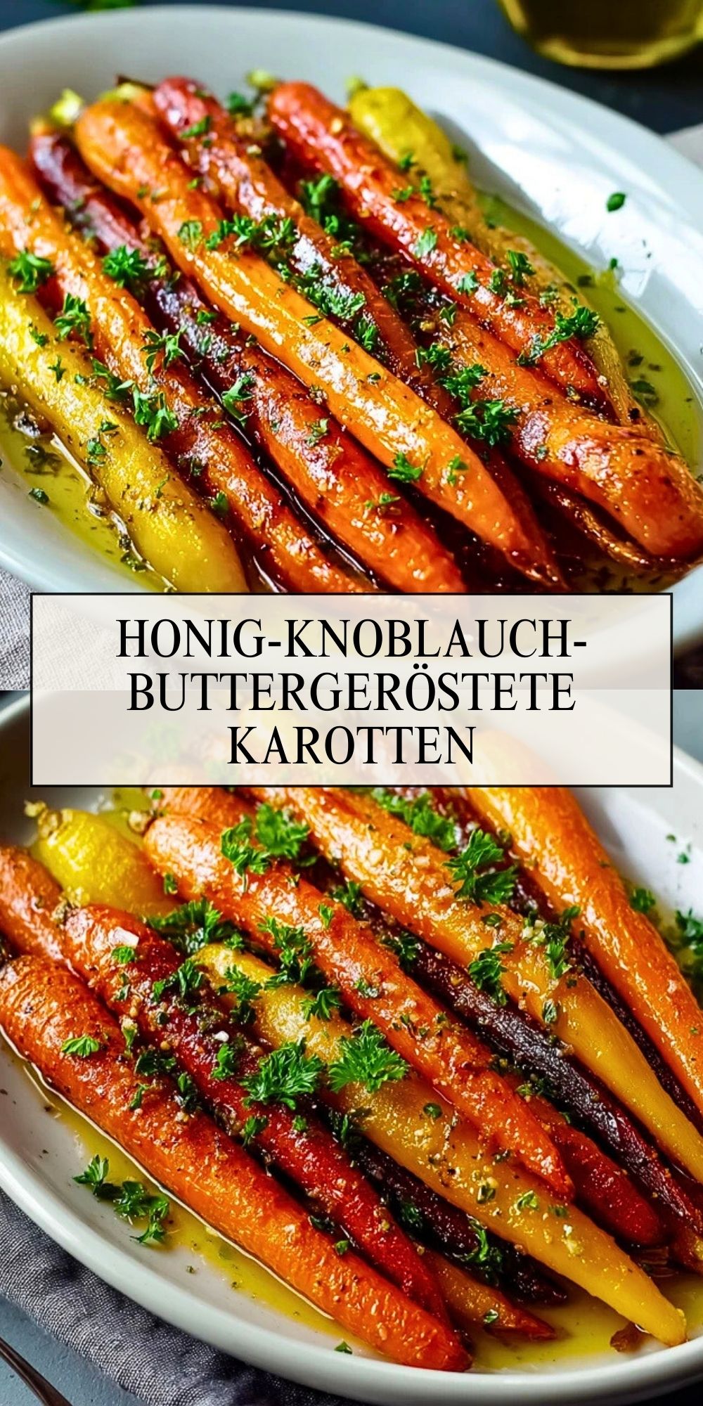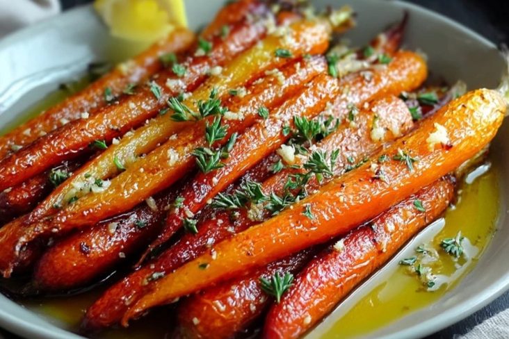 Zarte, im Ofen geröstete Karotten mit einer glänzenden Glasur aus Butter, Honig und Knoblauch. Diese einfache Beilage schmeckt süß, herzhaft und aromatisch zugleich und passt sowohl zu Alltagsgerichten als auch zu festlichen Menüs.