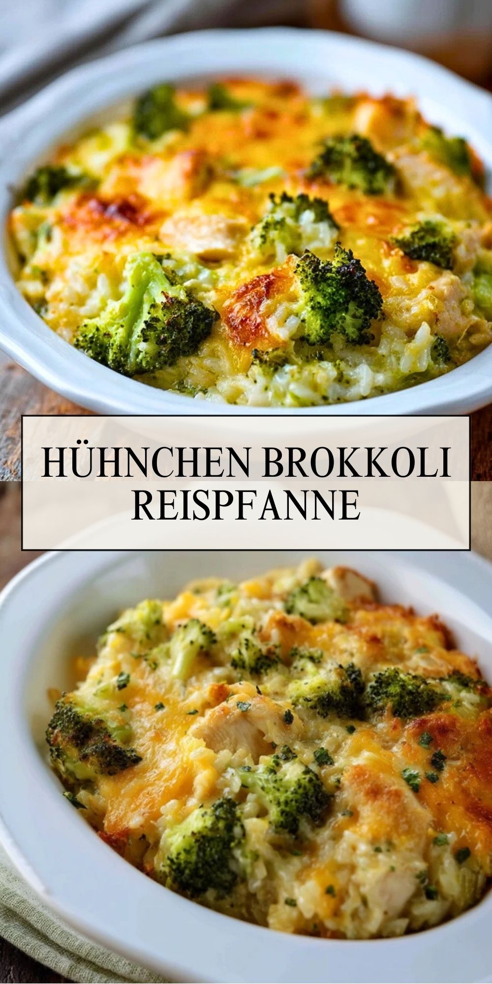 Dieses herzhafte Ofengericht vereint saftiges Hähnchen, knackigen Brokkoli, lockeren Reis und eine cremige Sauce mit goldener Käsekruste. Perfekt für die ganze Familie und ideal zum Vorbereiten oder Aufwärmen!