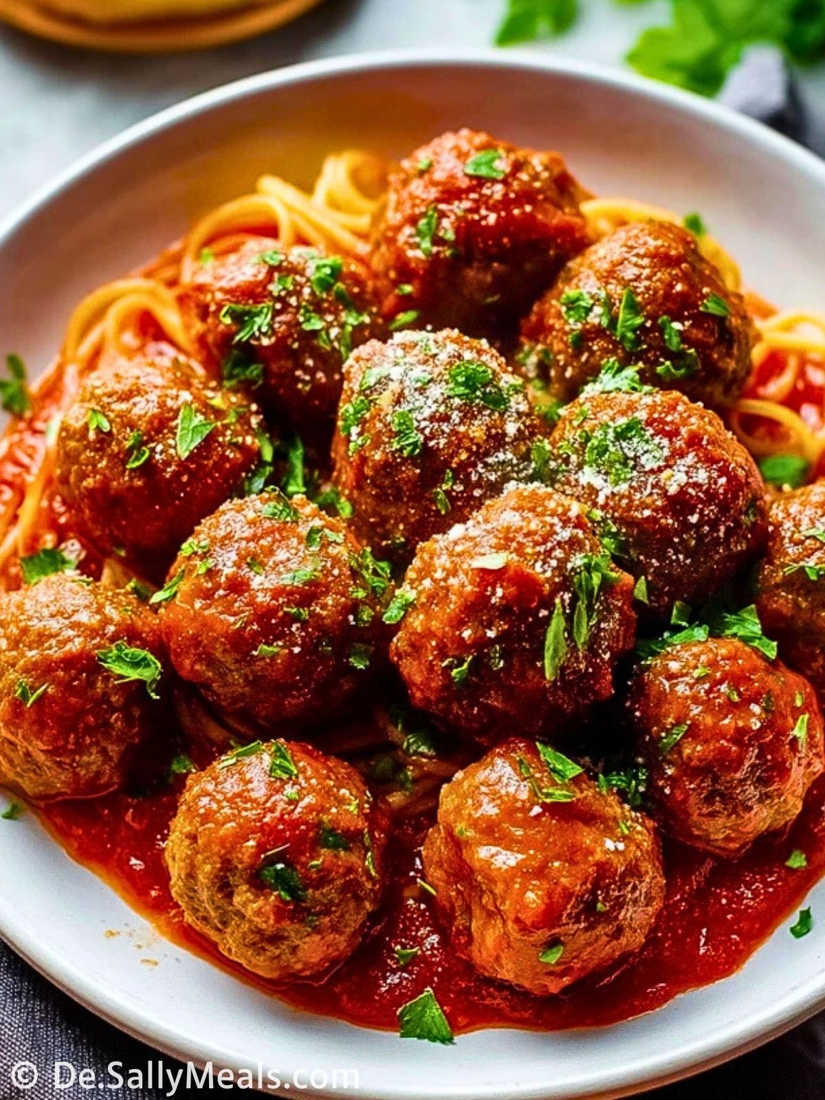 7. Mit frischer Petersilie und Parmesan bestreut servieren. Dazu passen Spaghetti, Ciabatta oder ein frischer Salat.