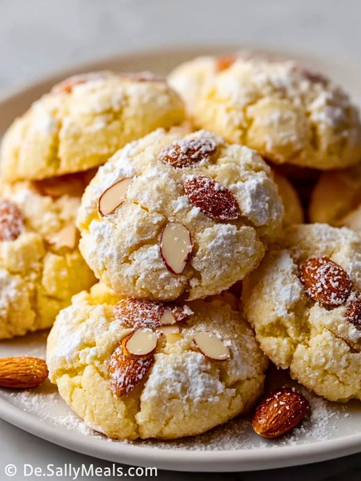 Das Schöne an diesem Rezept ist seine unkomplizierte Art. Der Teig lässt sich ohne großen Aufwand zubereiten, und trotzdem wirken die Kekse wie aus einer guten italienischen Pasticceria. Puderzucker sorgt für eine feine Süße, gehobelte Mandeln bringen Struktur und ein schönes Finish, und der Mandellikör gibt dem Ganzen eine besondere, leicht aromatische Tiefe.