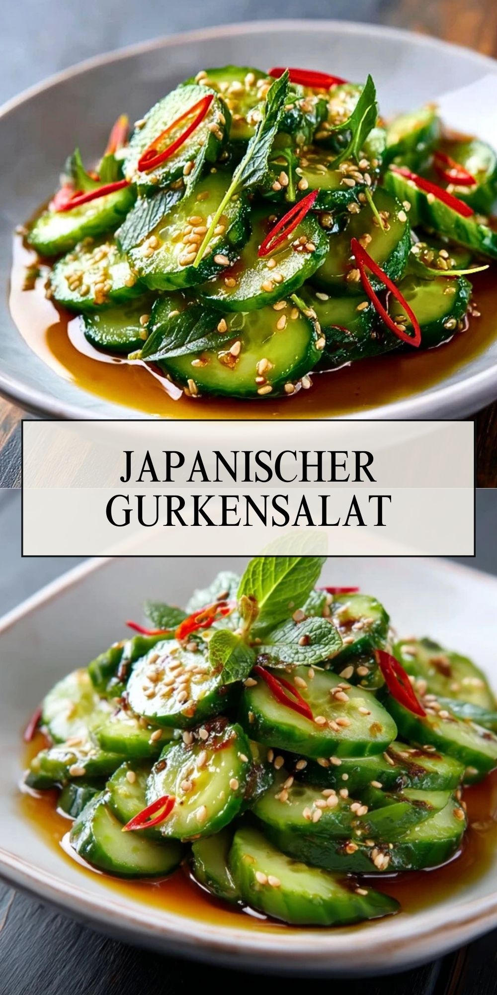 Dieser Japanische Gurkensalat ist frisch, leicht und herrlich aromatisch. Dünn geschnittene Gurken werden mit einem ausgewogenen Dressing aus Reisessig, Sojasauce, Sesamöl und etwas Zucker mariniert und mit geröstetem Sesam verfeinert. Perfekt als schnelle Beilage zu Reisgerichten, Fisch, Tofu oder einfach als erfrischender Salat an warmen Tagen.