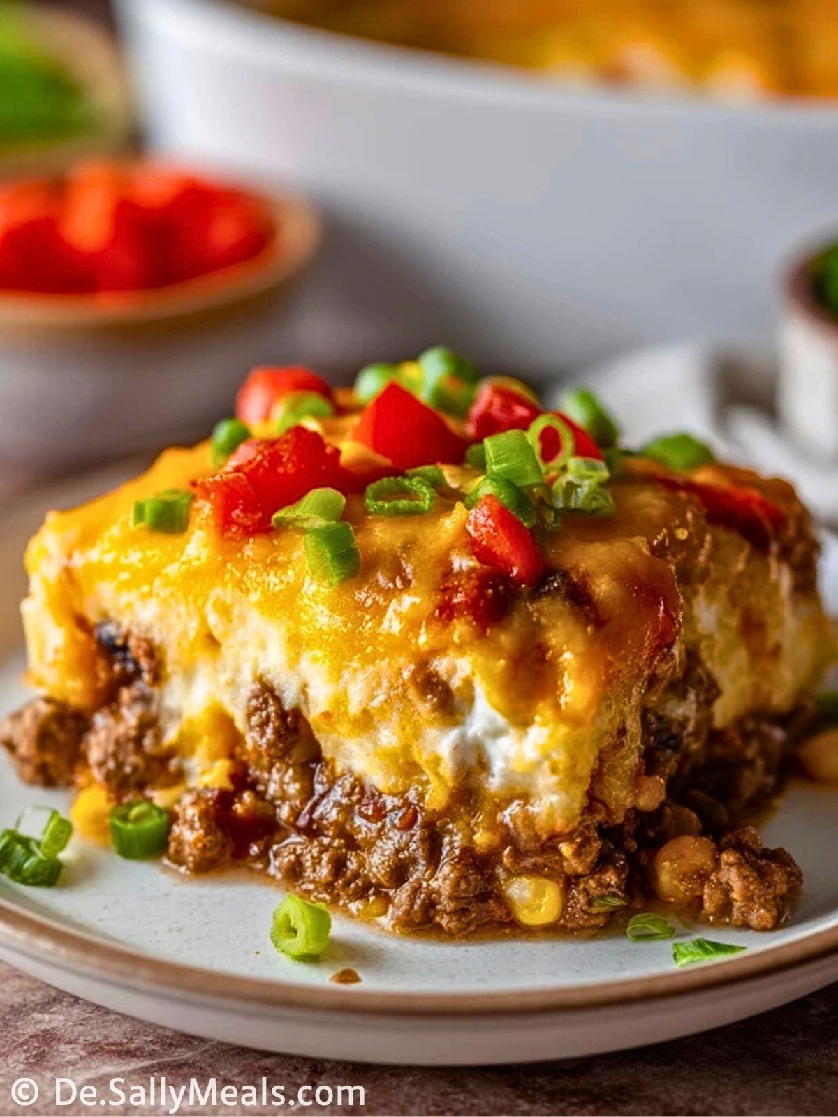 Besonders praktisch ist, dass sich dieser Auflauf gut vorbereiten lässt und im Ofen ganz entspannt fertig gart. Die Kombination aus pikantem Fleisch, cremiger Füllung und geschmolzenem Käse sorgt für eine wunderbar saftige Konsistenz, während der Boden dem Gericht Struktur gibt. So entsteht ein Auflauf, der sowohl im Alltag als auch für Gäste bestens funktioniert.